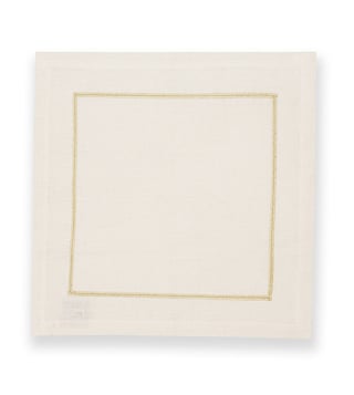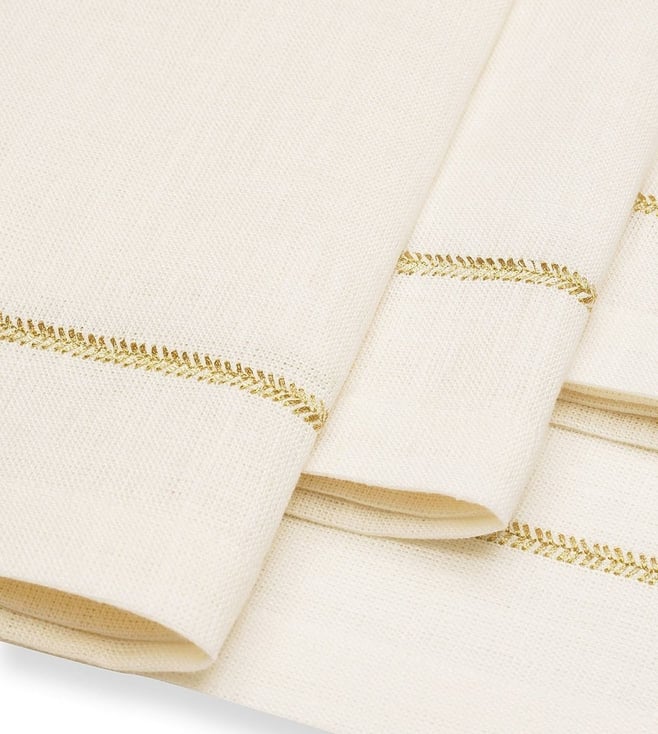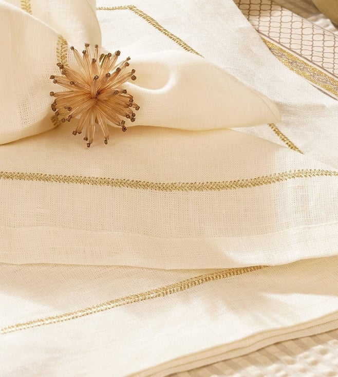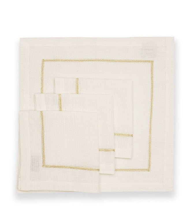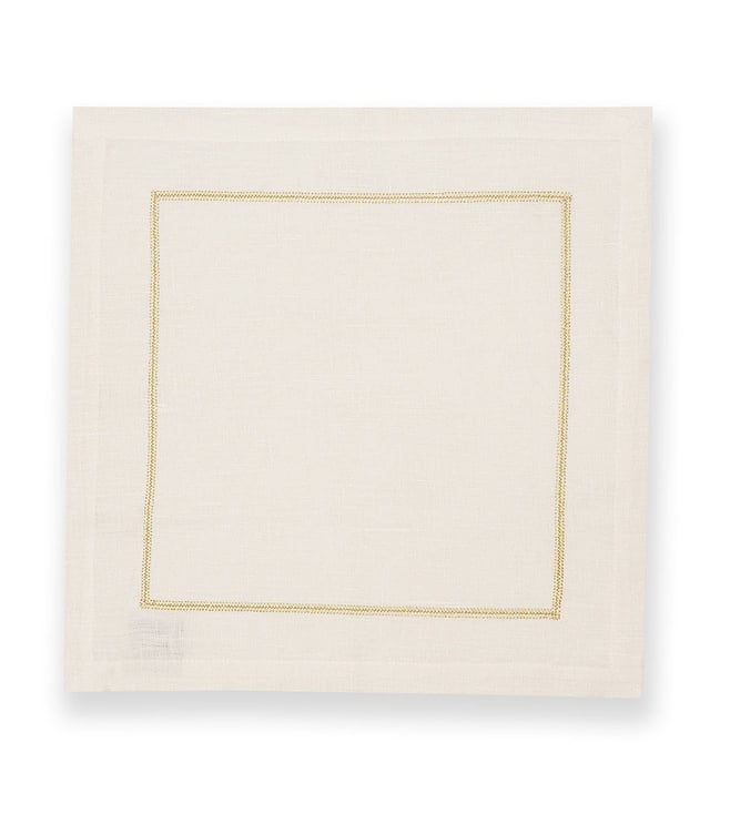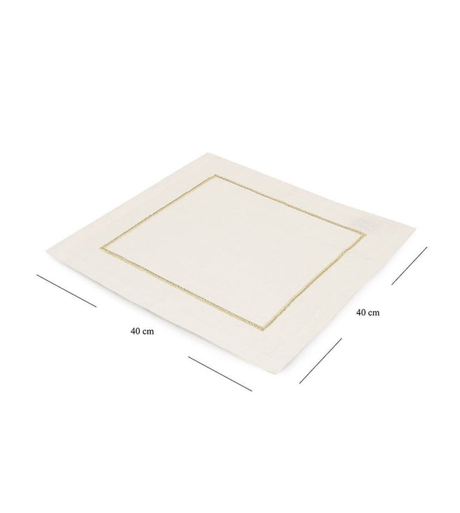 Off White Linen Zari Embroidered Square Napkins - Set of 4