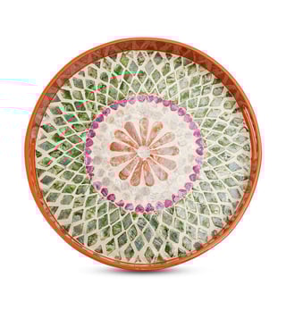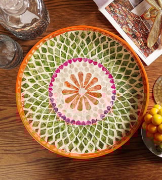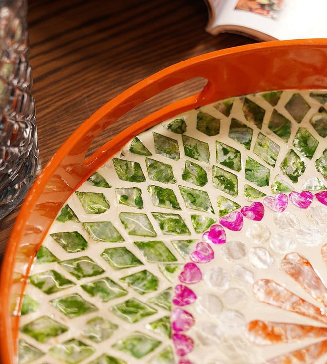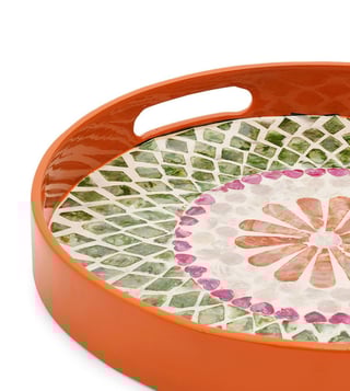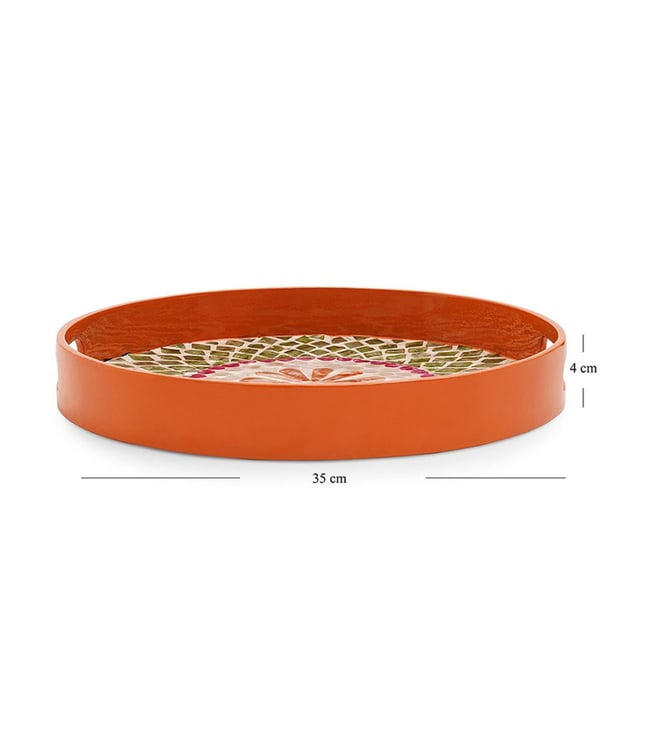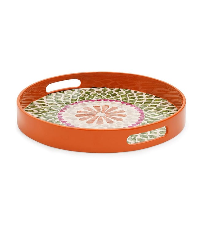 Pure Home and Living Orange & Green Bamboo Round Lacquer Tray