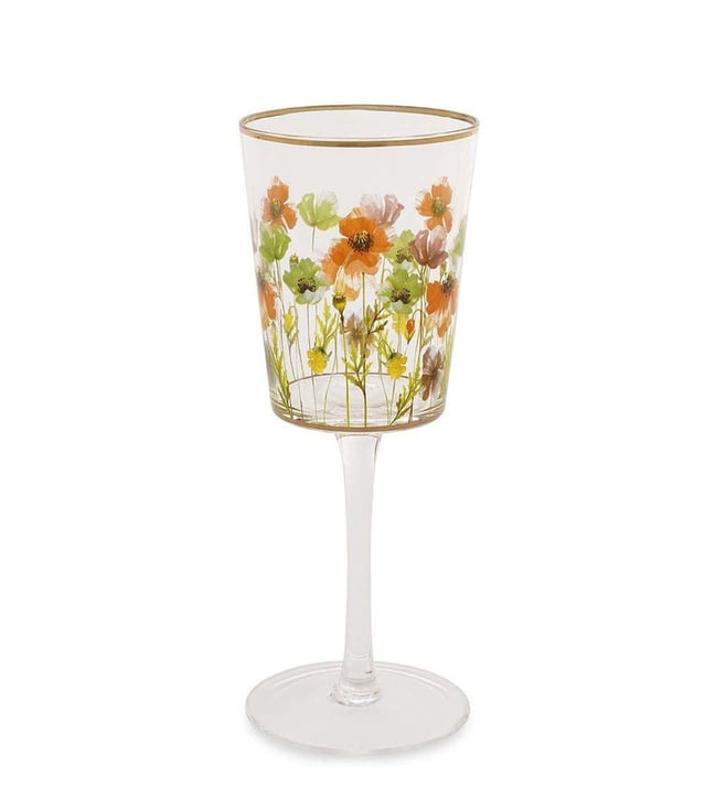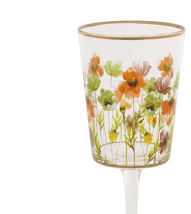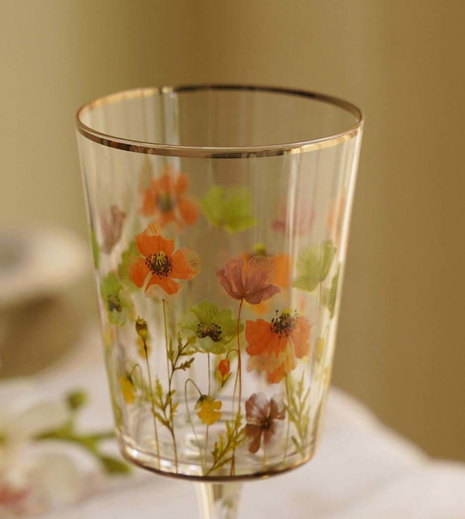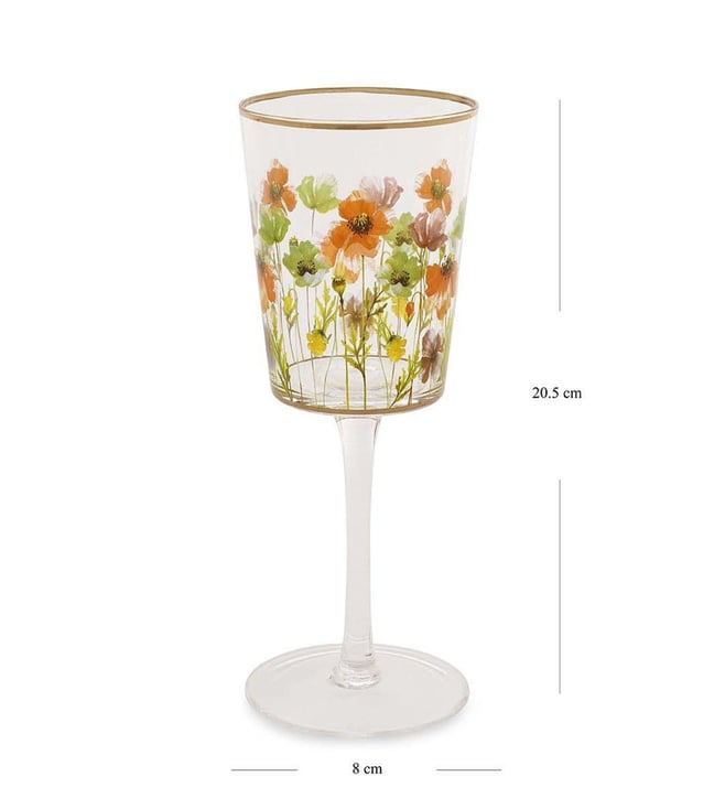 Pure Home and Living Orange & Green Glass Floral Print Wine Glasses (0.3 L) - Set of 2