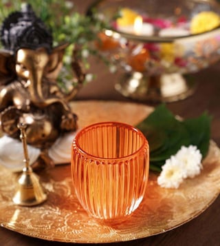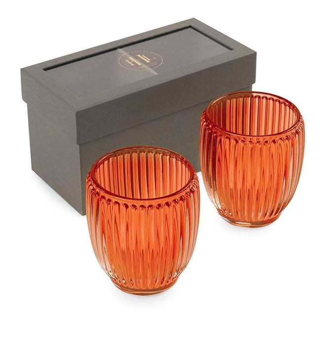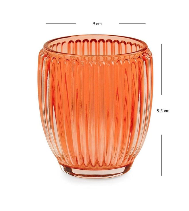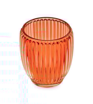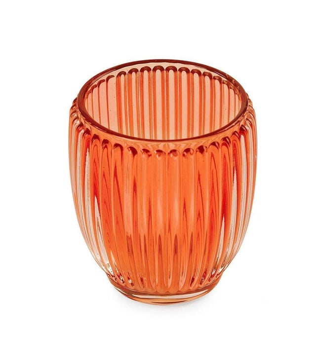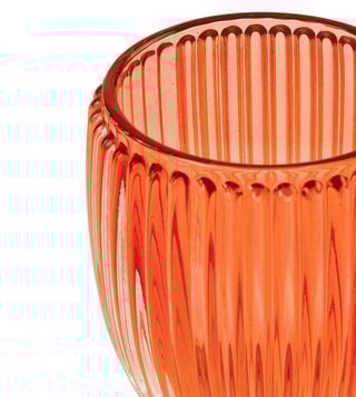 Orange Glass Ribbed Large Tealight Holders - Set of 2