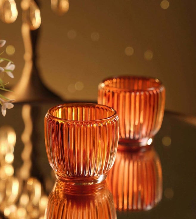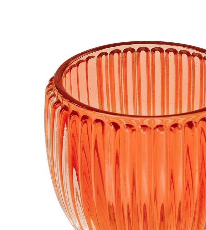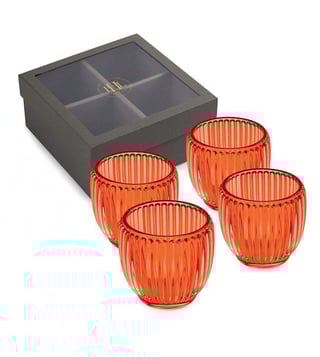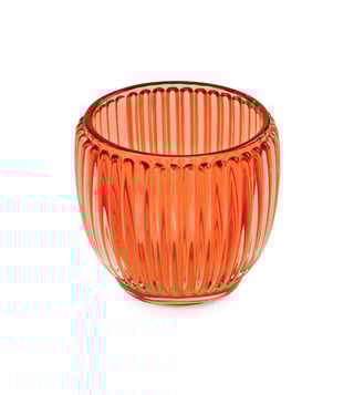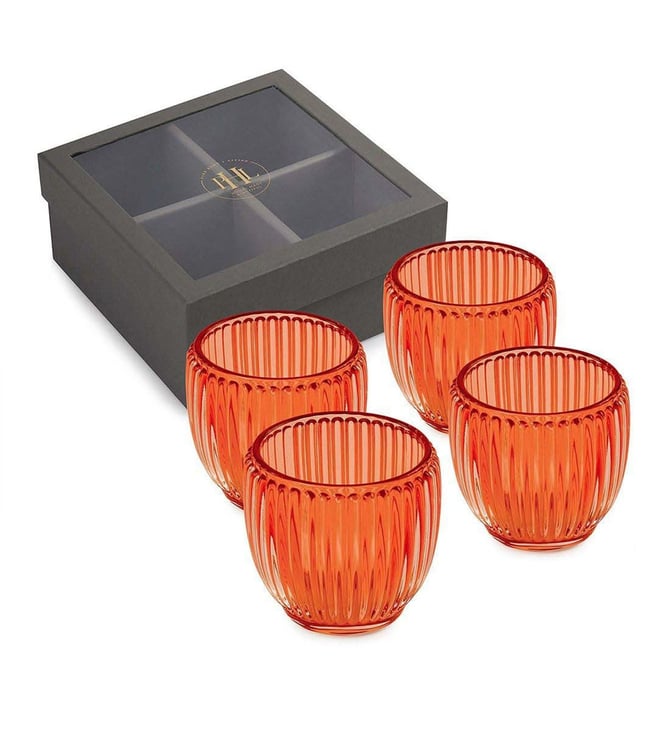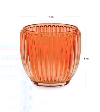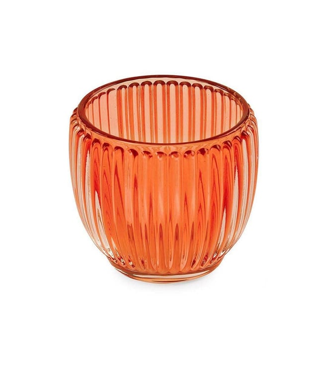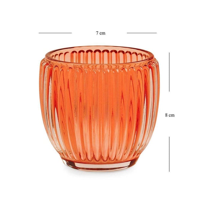 Orange Glass Ribbed Small Tealight Holders - Set of 4