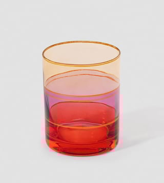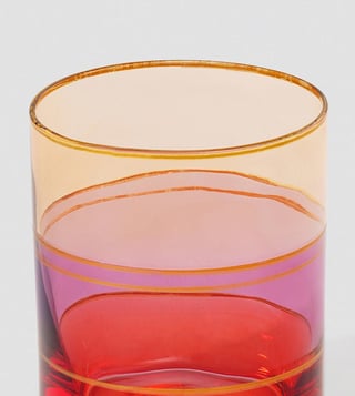 This vibrant drinking glass features a bold tri-color design, accented with delicate golden rings for an opulent touch. Its contemporary layered palette brings playful elegance to any table setting or bar display.