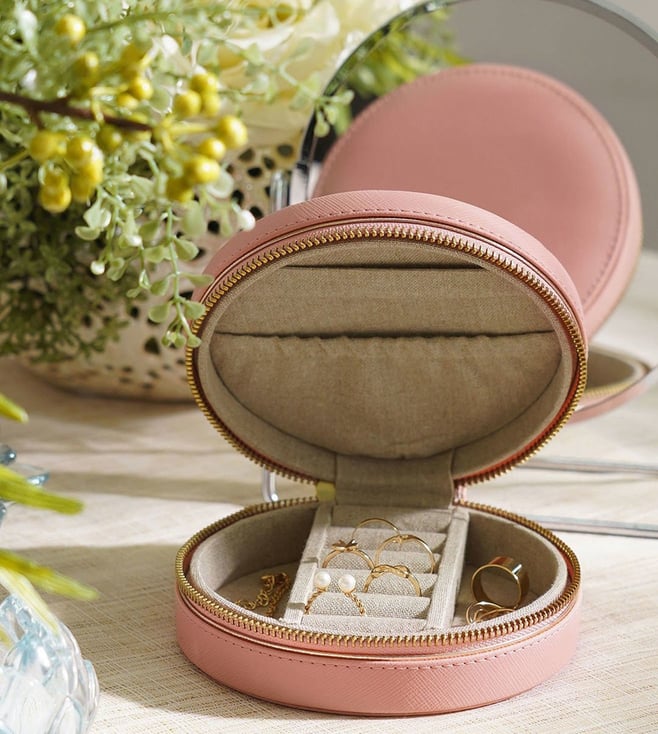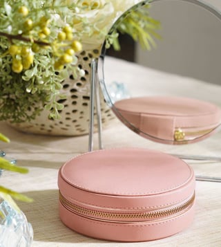 Keep your jewellery organized and secure with this Pink Faux Leather Jewellery Organiser from Pure Home and Living. Made with MDF, metal, and faux leather, it's the perfect gift for anyone on New Year, Diwali, Mother's Day, Wedding, Birthday, or Anniversary.'Disclaimer: All other items in the image are only for display purposes and will not be a part of the delivery content. Product colour may slightly vary due to photographic lighting sources. Country of Origin - India.