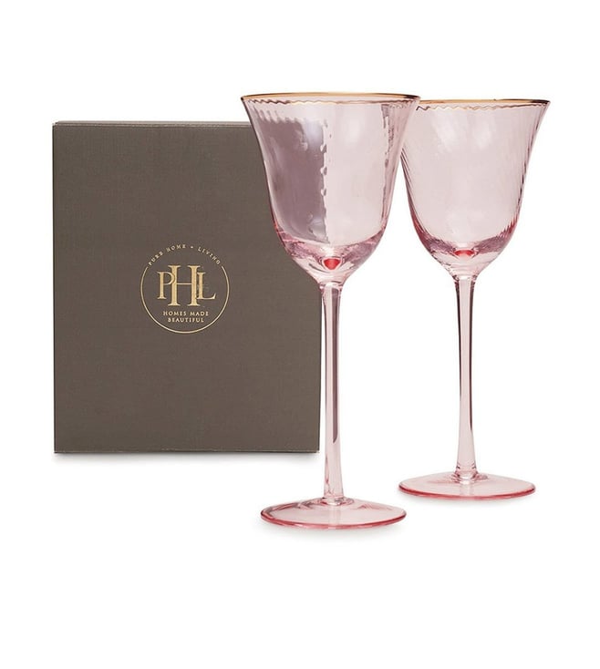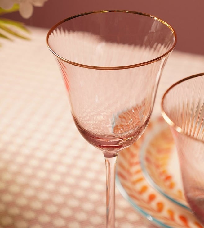 Pure Home and Living Pink Spiral Glass Textured Wine Glasses - Set of 2 (250 ml)