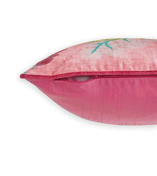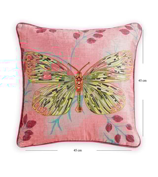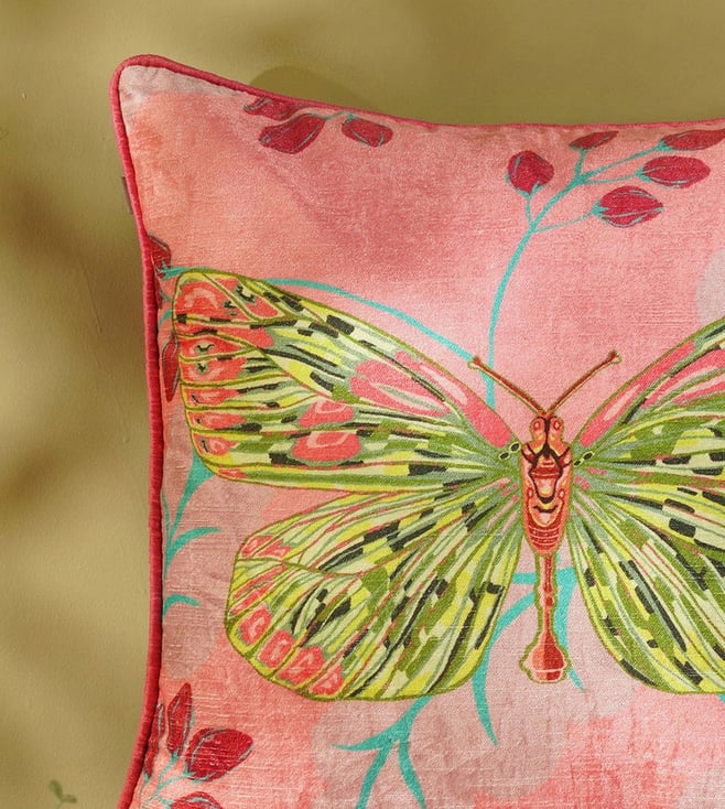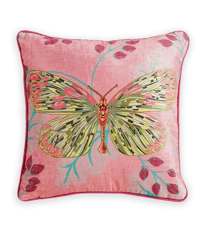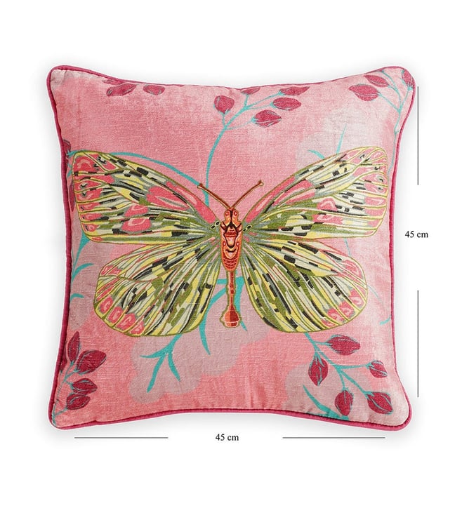 Pure Home and Living Pink Velvet Butterfly Print Square Cushion Cover