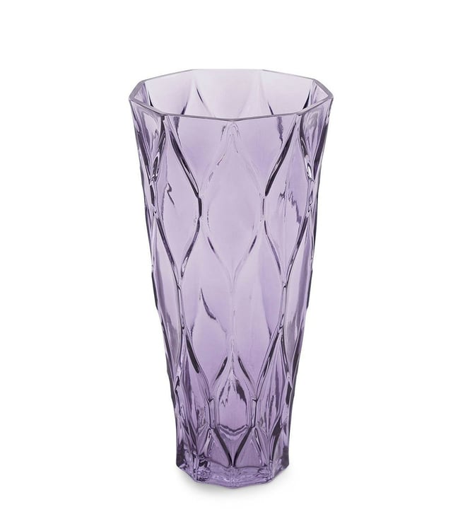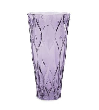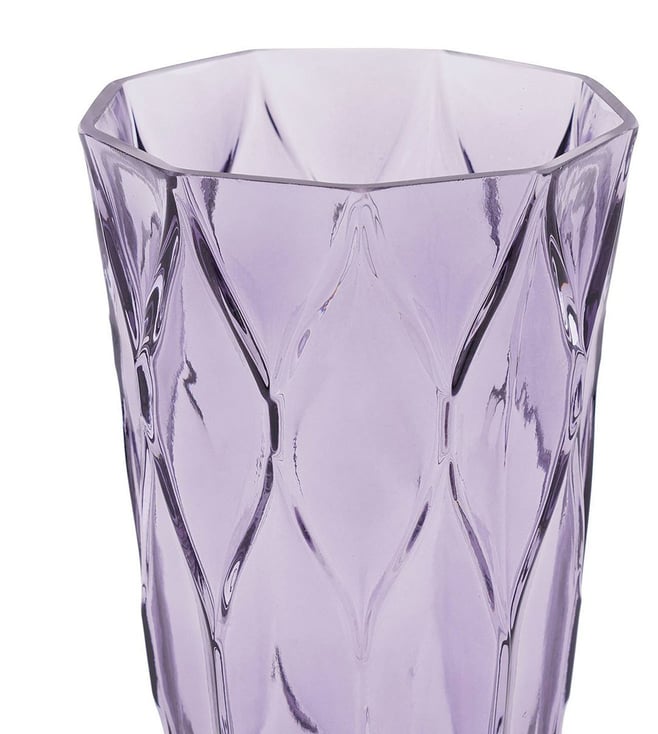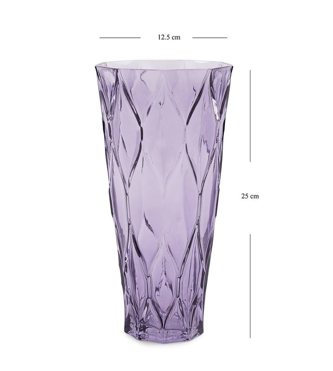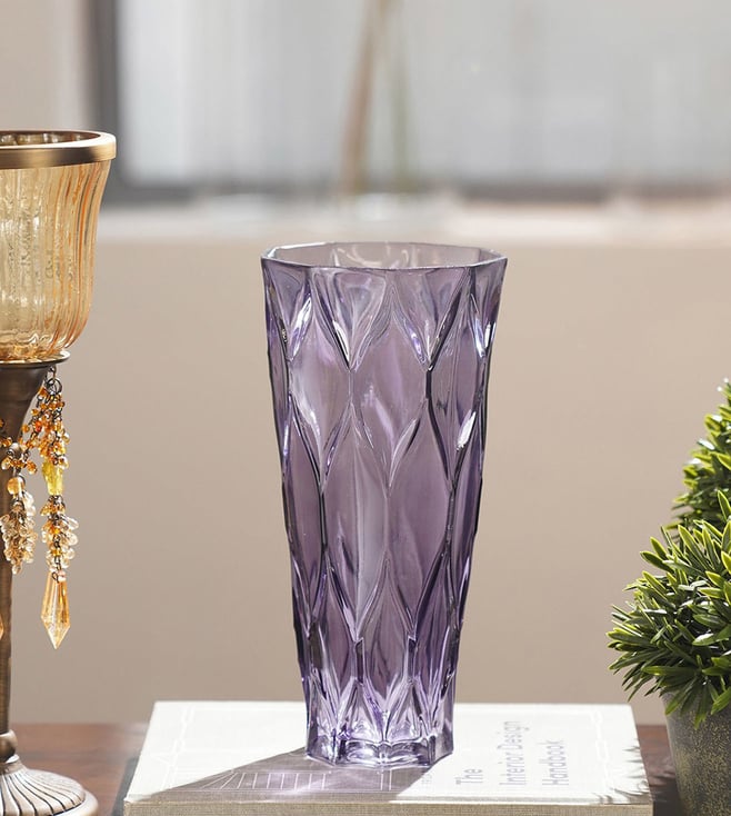 Enhance your home decor with the stunning Pure Home and Living Purple Glass Vases. These elegant vases, crafted from beautiful purple glass, will add a touch of sophistication and color to any room. Disclaimer: All other items in the image are only for display purposes and will not be a part of the delivery content. Product colour may slightly vary due to photographic lighting sources. Country of Origin - India.