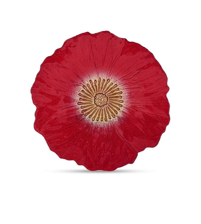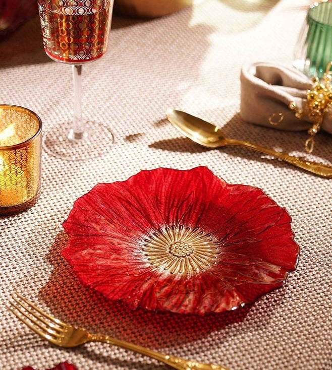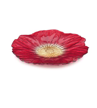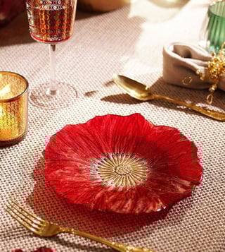 Red Glass Floral Shaped Dessert Plates - Set of 2