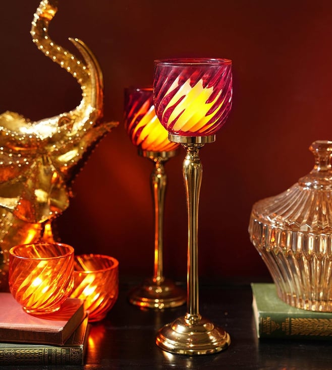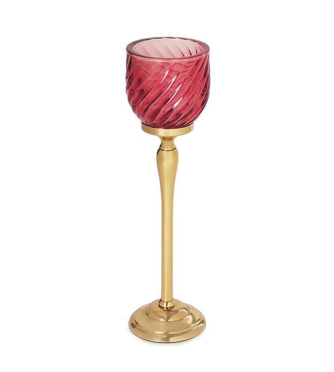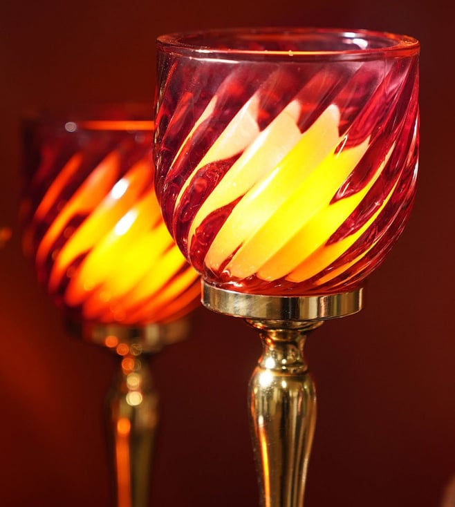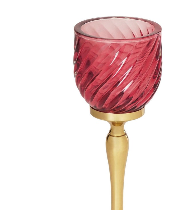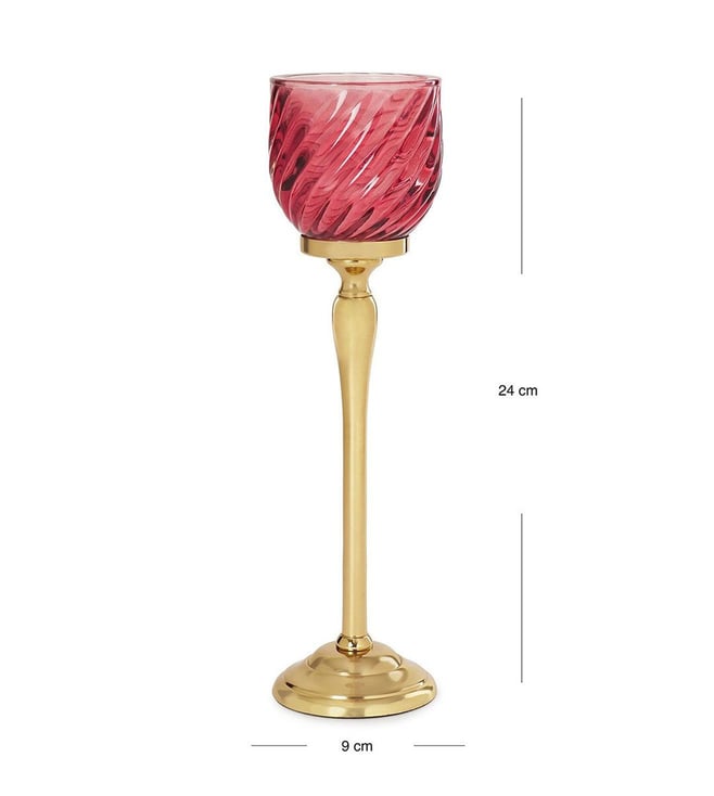 Enhance your space with Pure Home and Living Red Glass Hurricanes. Crafted from vibrant red glass, these stunning accents bring warmth and style to any room. Disclaimer: All other items in the image are only for display purposes and will not be a part of the delivery content. Product colour may slightly vary due to photographic lighting sources. Country of Origin - India.