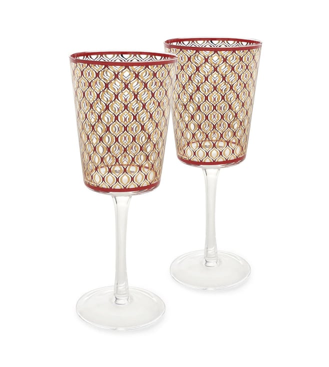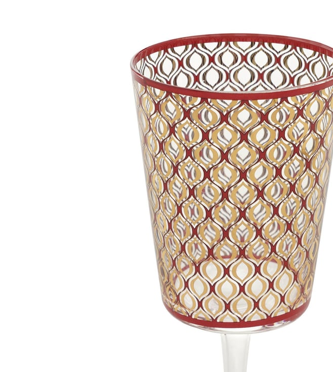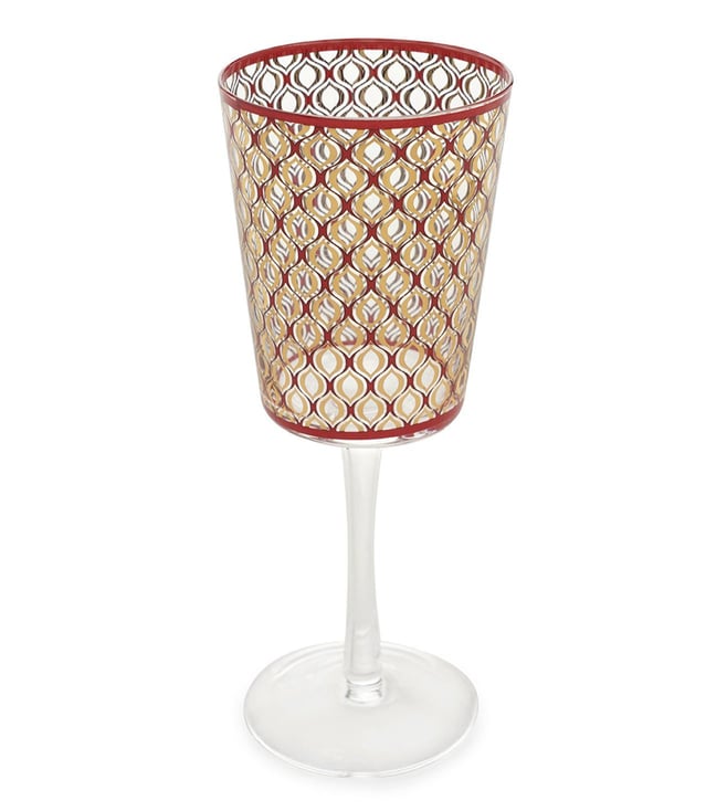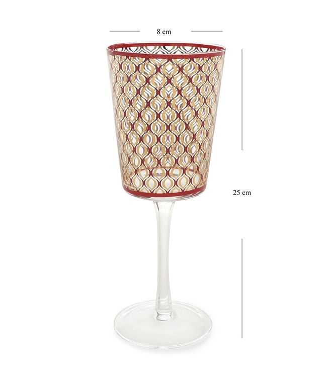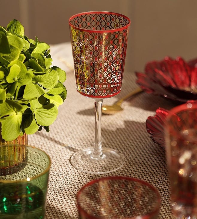 Elevate your wine experience with Pure Home and Living's Red Glass Printed Wine Glasses. Perfect for any occasion. #luxuryhome #winelovers' Disclaimer: All other items in the image are only for display purposes and will not be a part of the delivery content. Product colour may slightly vary due to photographic lighting sources. Country of Origin - India.