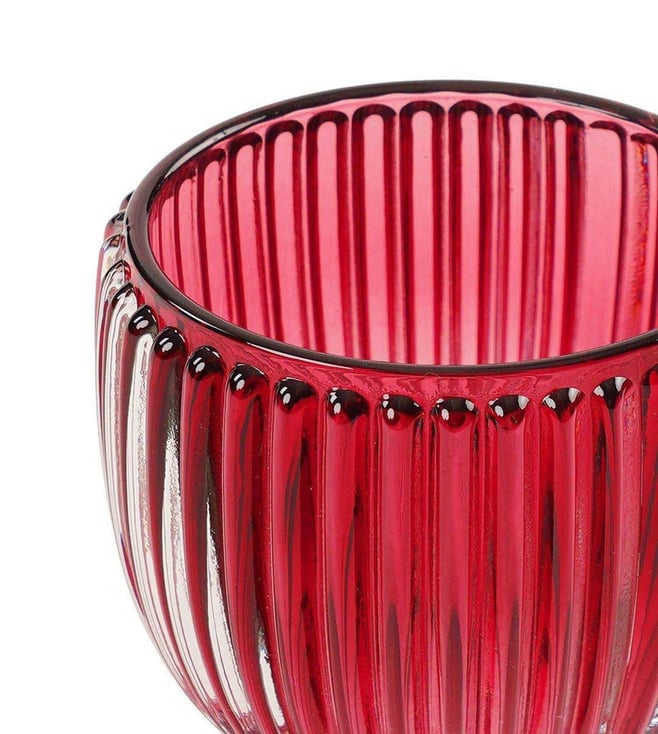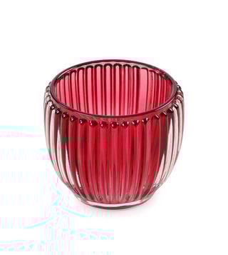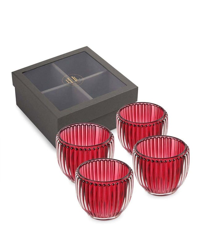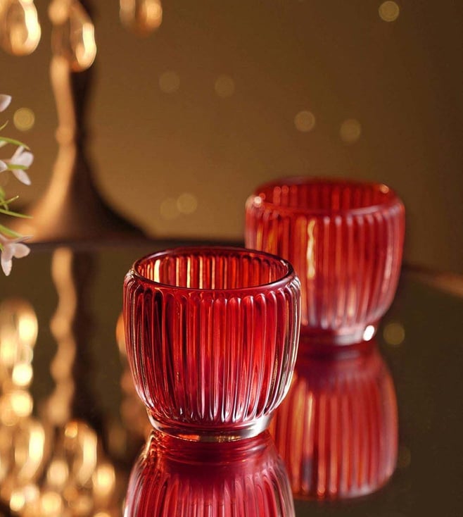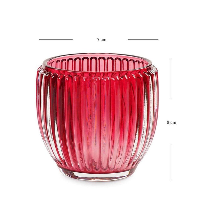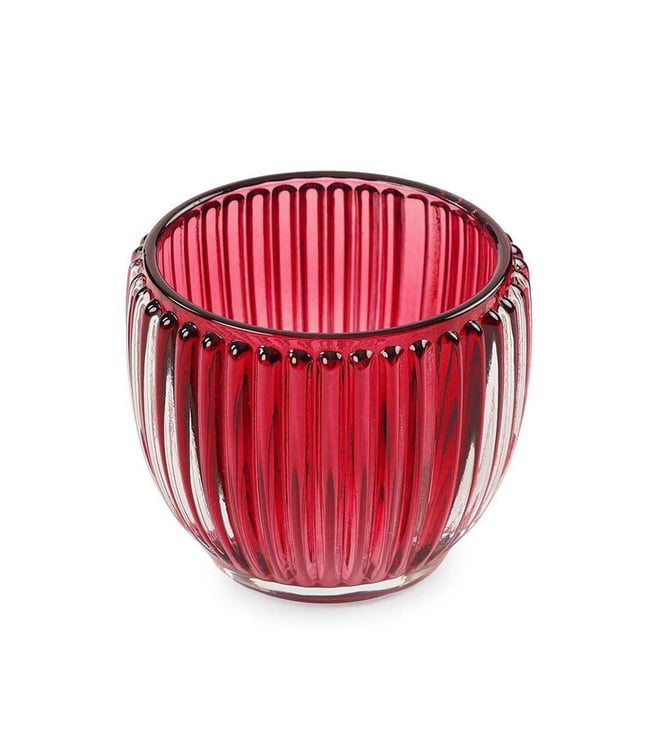 Red Glass Ribbed Small Tealight Holders - Set of 4