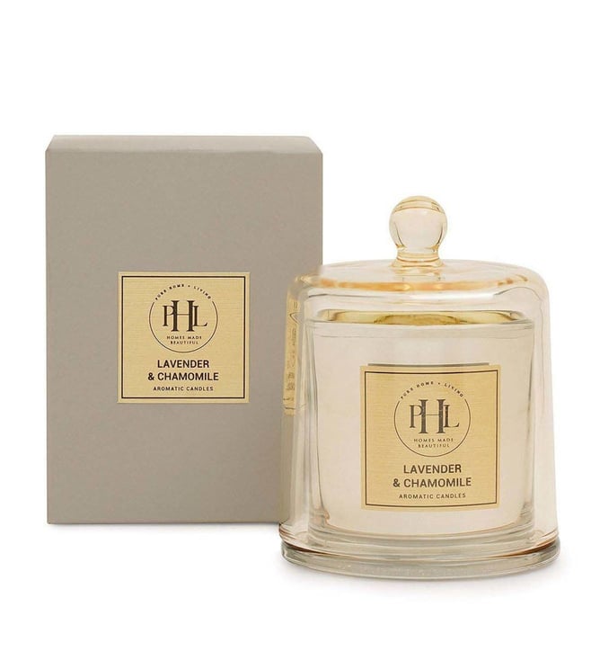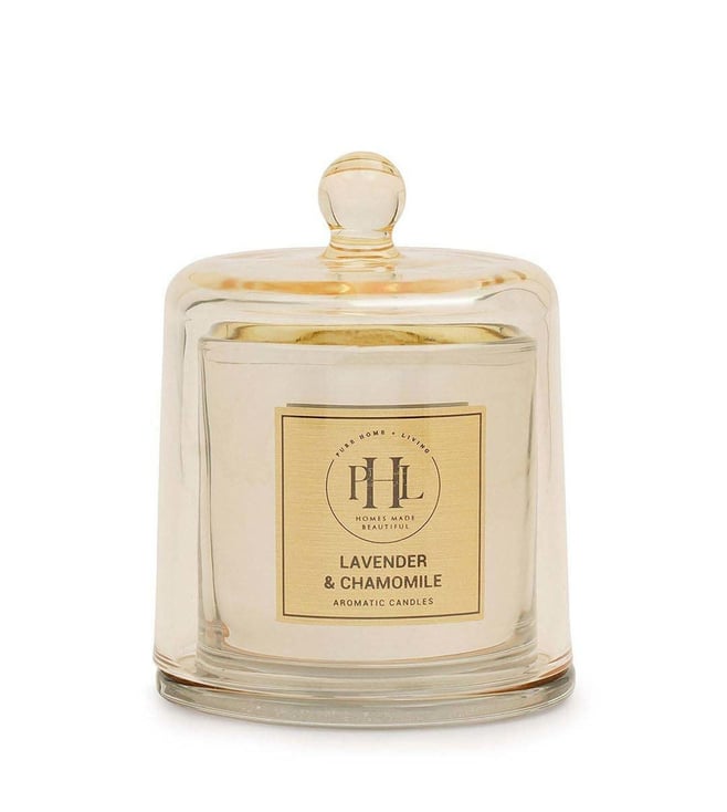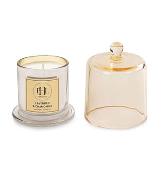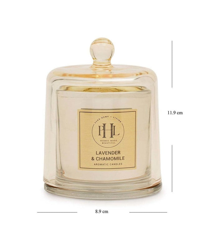 Create a tranquil and relaxing atmosphere with this lavender and chamomile scented candle with cloche from Pure Home and Living. Filled in a beautiful glass jar, it is all you need to create a serene ambience in your home. The calming scent of lavender and chamomile adds a soothing touch and will add a stylish touch to your room.