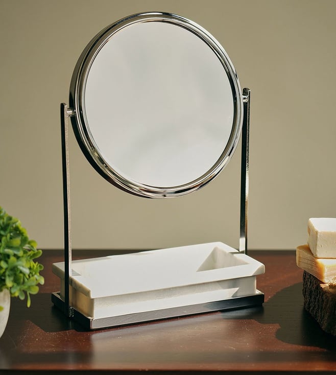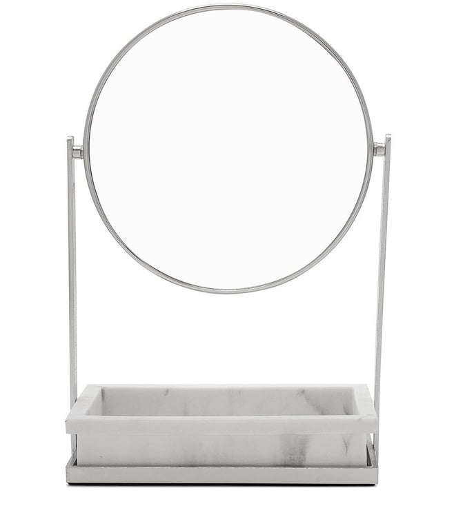Add a touch of elegance to your home with Pure Home and Living's Silver Metal Mirrors. Perfect for any occasion such as New Year, Diwali, Mother's Day, Weddings, Birthdays, or Anniversaries.'Disclaimer: All other items in the image are only for display purposes and will not be a part of the delivery content. Product colour may slightly vary due to photographic lighting sources. Country of Origin - India.