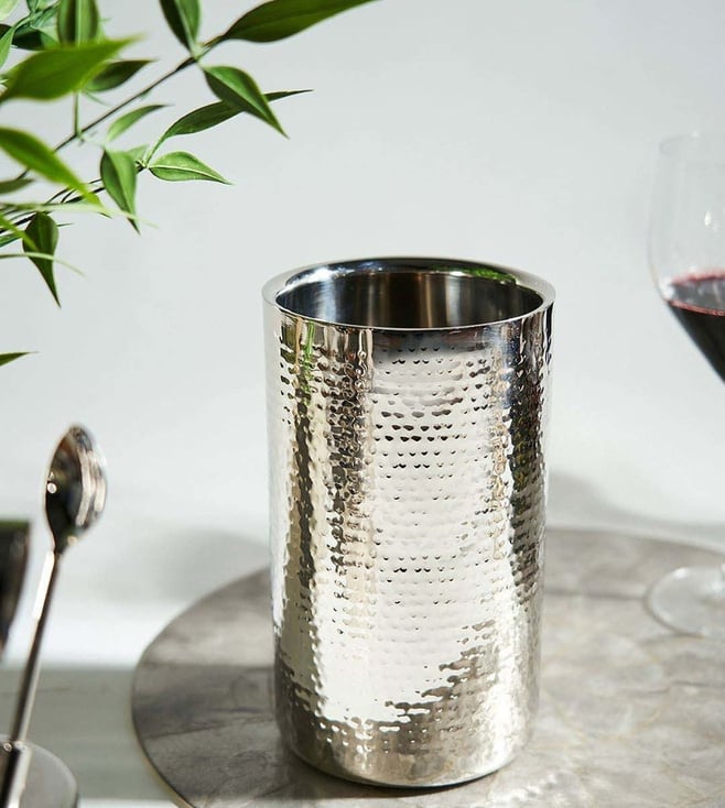 Serve your favorite cocktails in this aesthetically pleasing set of 1 hammered wine chiller from Pure Home and Living with a hammered texture. It features an excellent finish to elevate your barware collection. It is crafted with care using stainless steel.