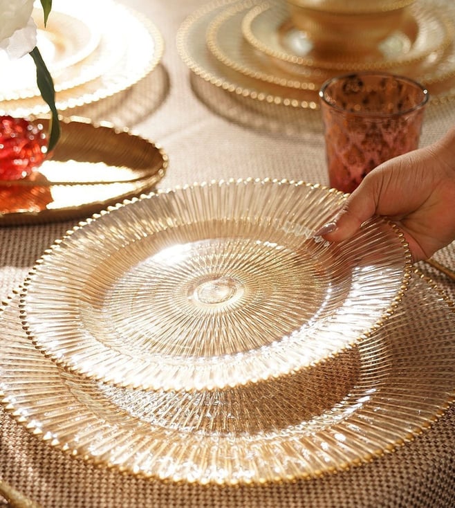 Pure Home and Living Solid Gold Glass Set of 2 Dinner Plates