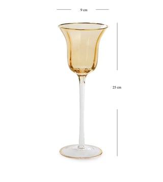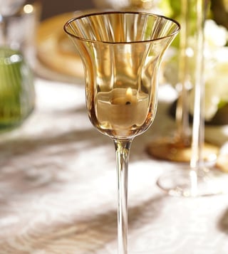 Combining elegance and sophistication, this gleaming gold candle holder with a stem will lend just the right amount of festive vibe to your home. The luminous gold accents dance brilliantly in the candlelight, providing a breathtaking focal point in any room. Made of glass Made in China