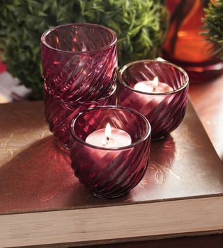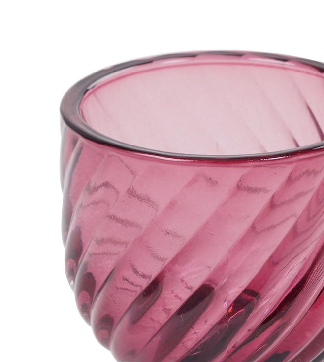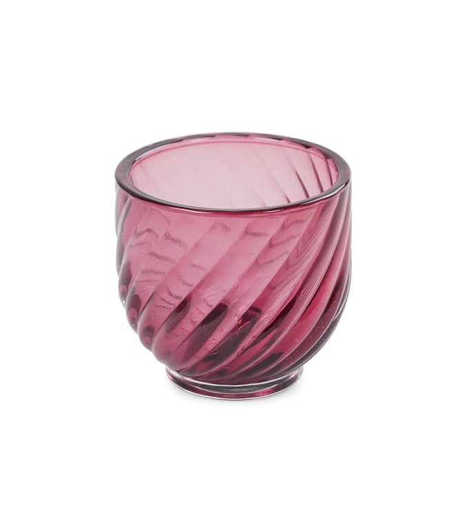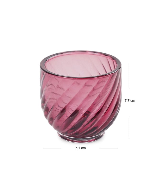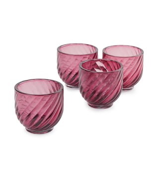 Illuminate your space with these old rose swirl-textured tealight holders, casting a soft, mesmerizing glow. Their elegant design and vibrant hue add an elegant touch to any setting. Swirl texture. Vibrant colour. Crafted in glass. Made in China. Comes in a set of 4.
