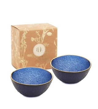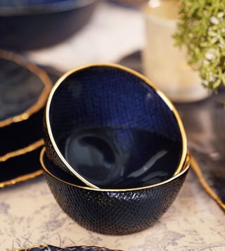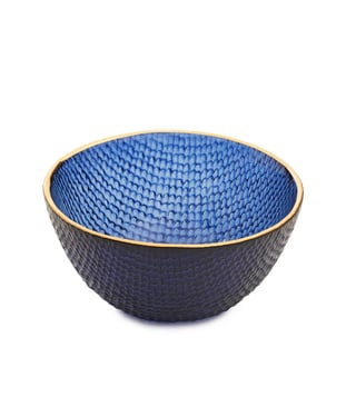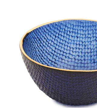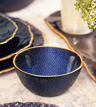 Featuring a gold rim, these blue fizz-textured side bowls exude a timeless charm. Classic pieces to own and cherish, these will help elevate your tablescape and make for a functional and beautiful choice for your collection. Textured detail. Features a gold outline. Made of glass. Made in Turkey. Comes in a set of 2.