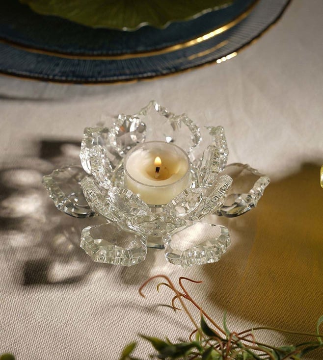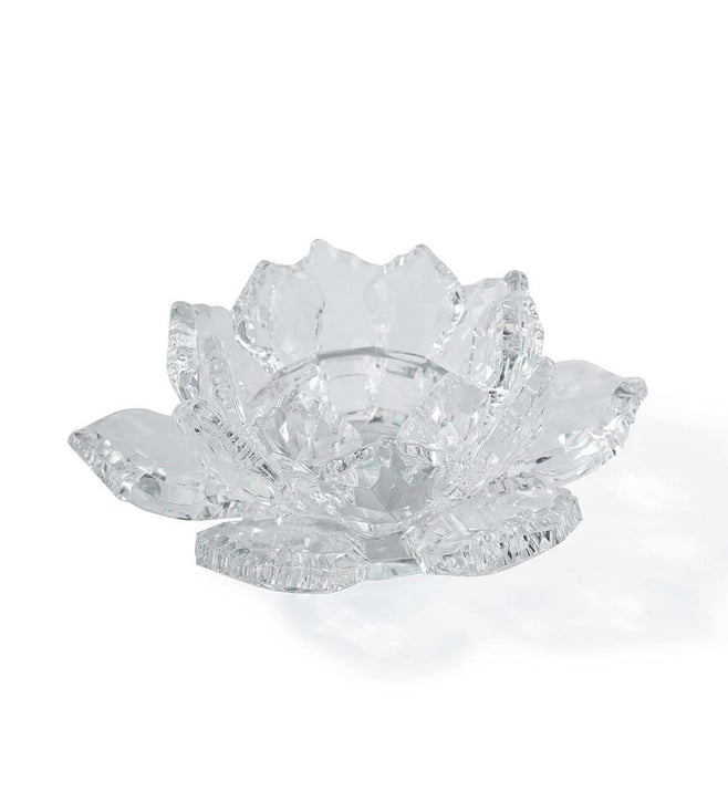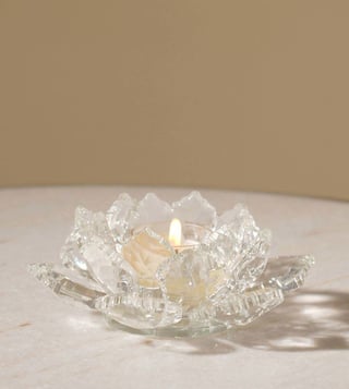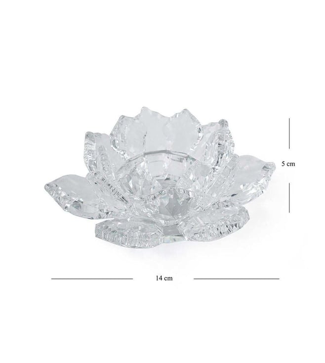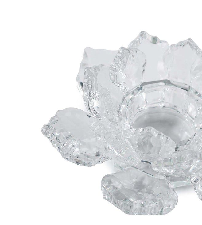 Pure Home and Living Transparent Crystal Lotus Shaped Tealight Candle Holder