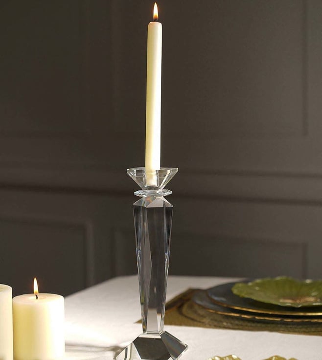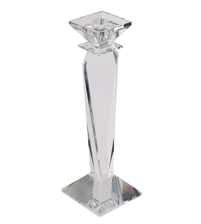 Pure Home and Living Transparent Crystal Tapered Large Candle Holder