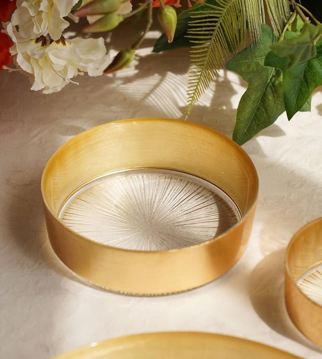 Serve in style with Pure Home and Living's elegant Transparent Glass Textured Serving Bowls. Perfect for any occasion.' Disclaimer: All other items in the image are only for display purposes and will not be a part of the delivery content. Product colour may slightly vary due to photographic lighting sources. Country of Origin - India.