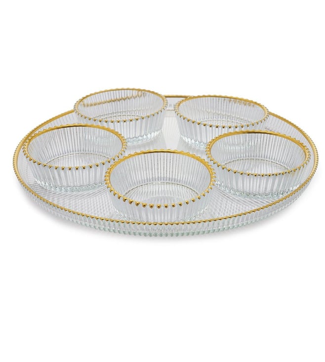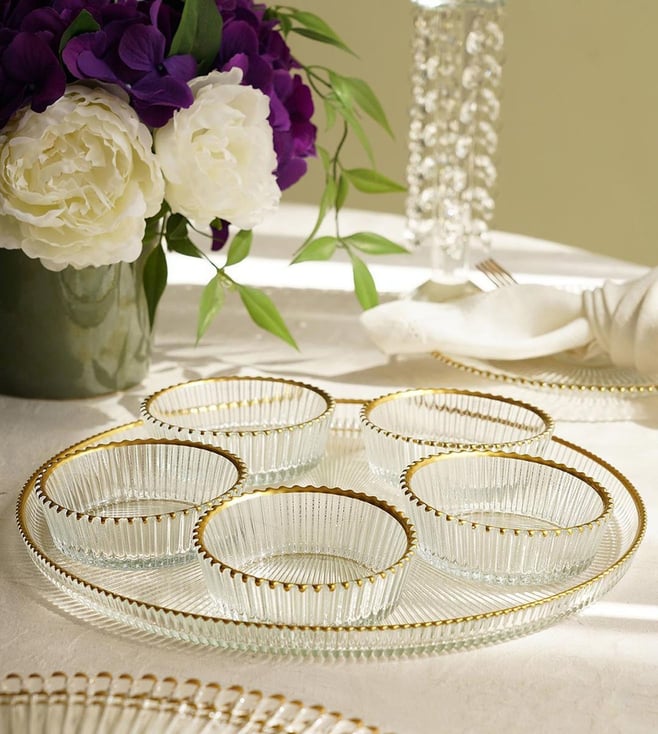 Pure Home and Living Transparent Glass Textured Serving Platters