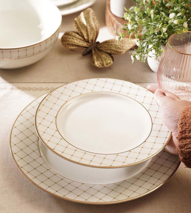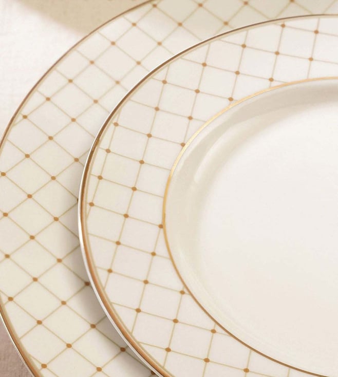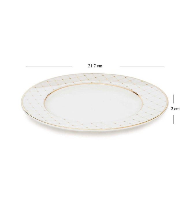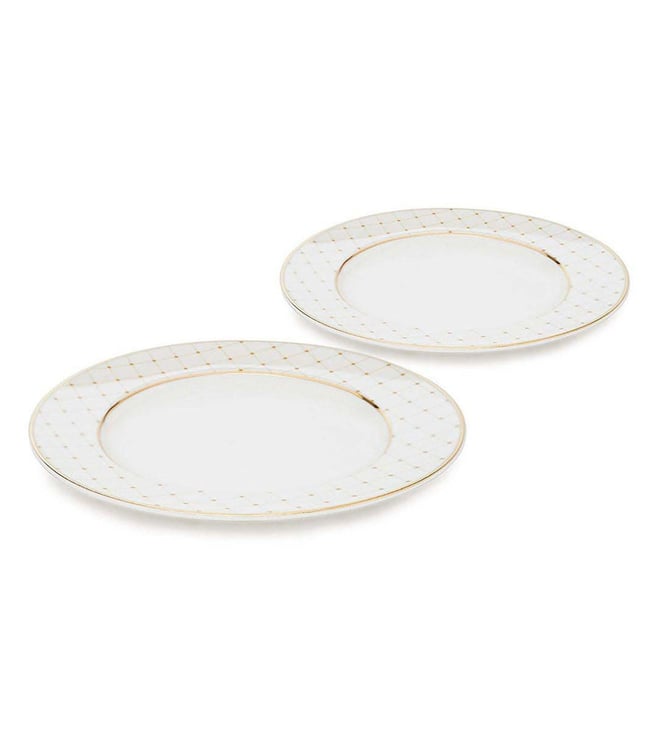 Elevate your dining experience with this set of 2 criss cross detail dessert plates from Pure Home and Living, crafted to blend elegance and functionality. Perfectly sized for serving cakes, pastries and sweets, they feature a durable, high-quality finish that resists chipping and stains. It is crafted from ceramic.
