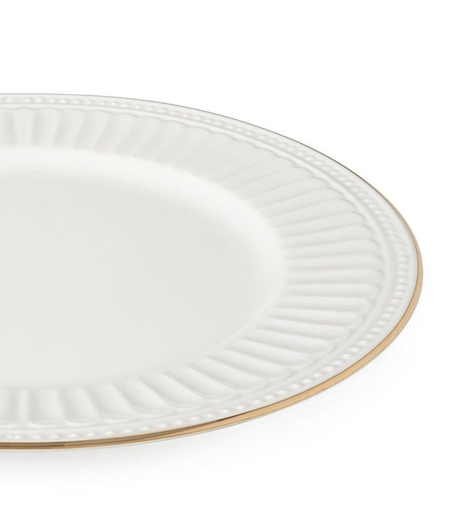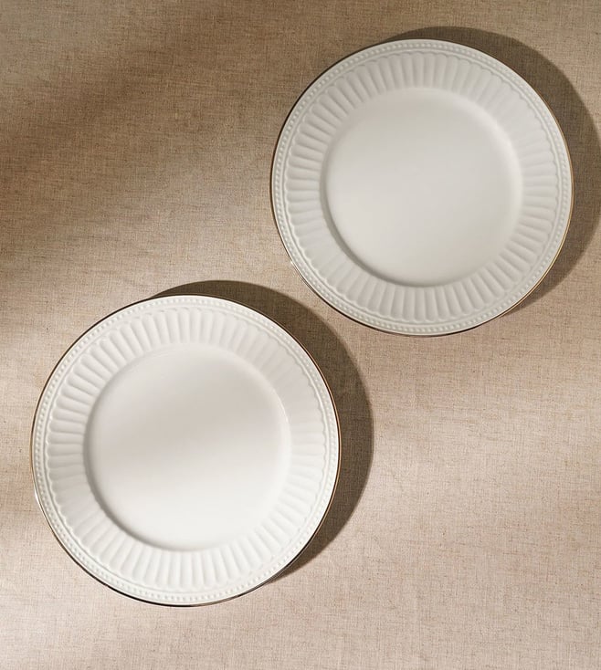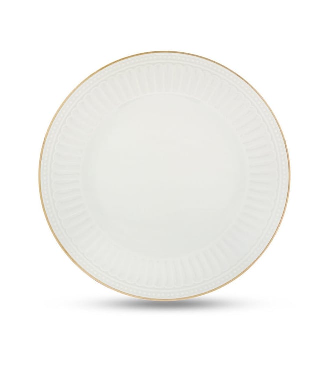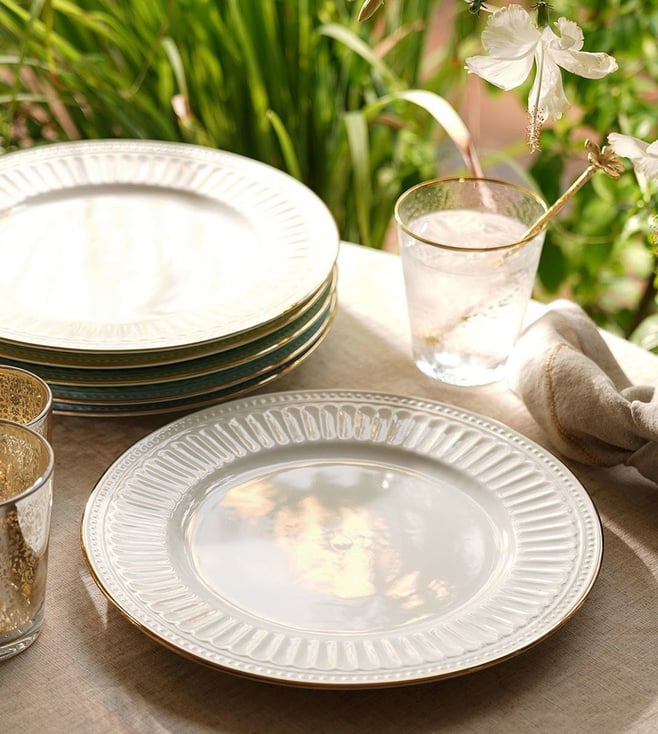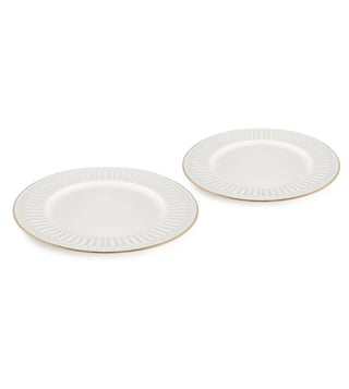 Add a touch of elegance to your dining experience with Pure Home and Living White Ceramic Dinner Plates. Perfect for special occasions like New Year, Diwali, Mother's Day, weddings, birthdays and anniversaries. These plates feature a real gold rim and are made of high-quality ceramic.'Disclaimer: All other items in the image are only for display purposes and will not be a part of the delivery content. Product colour may slightly vary due to photographic lighting sources. Country of Origin - India.