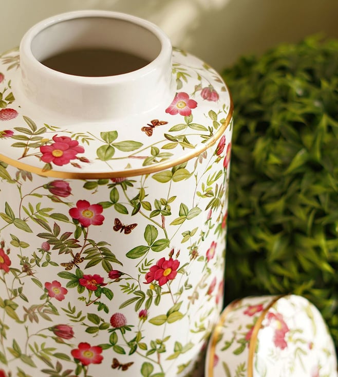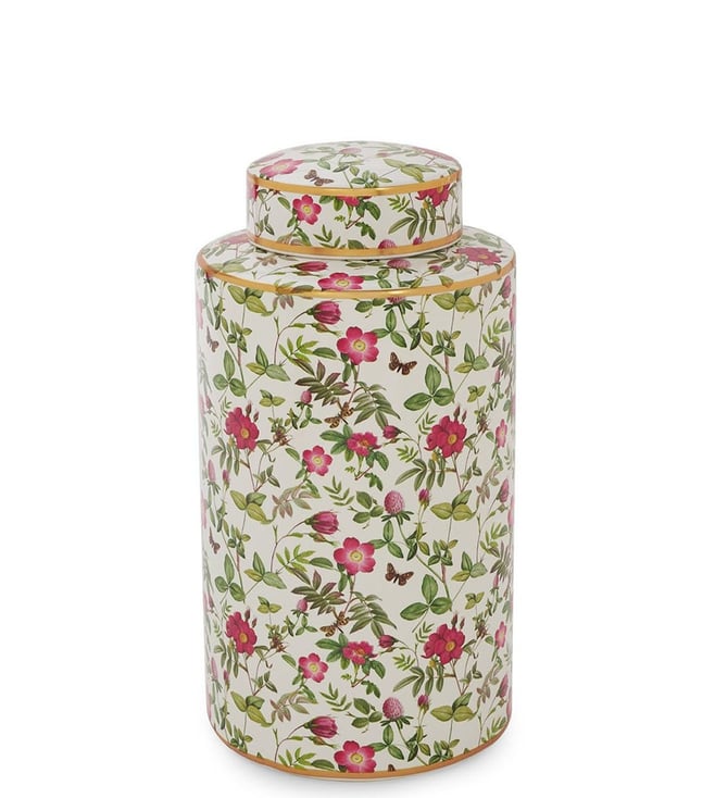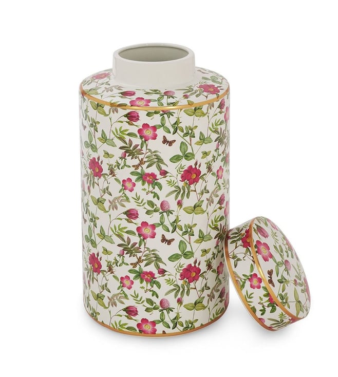 Pure Home and Living White Ceramic Floral Print Canister