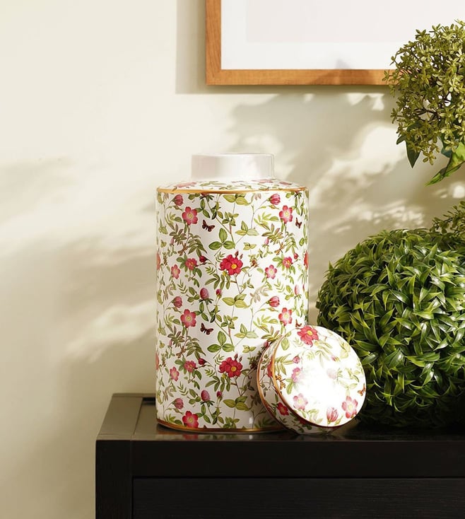 Lend your home a touch of luxe with this set of 1 floral print canister from Pure Home and Living. Elevated with a floral print, its intricate design gracefully wraps around the surface, adding elegance to any kitchen or living space. It is designed to perfection using ceramic.