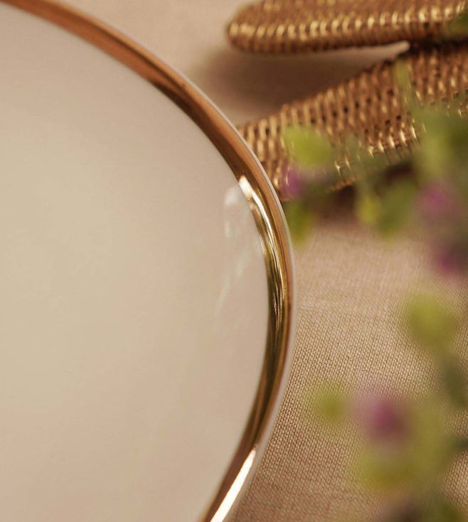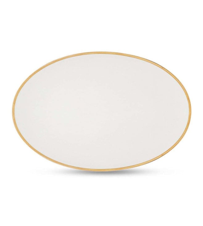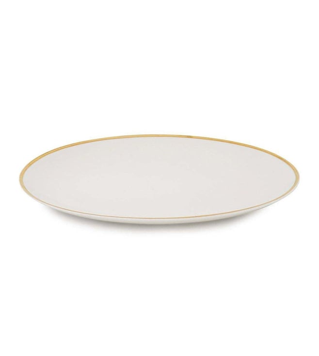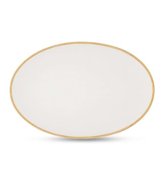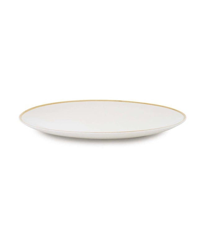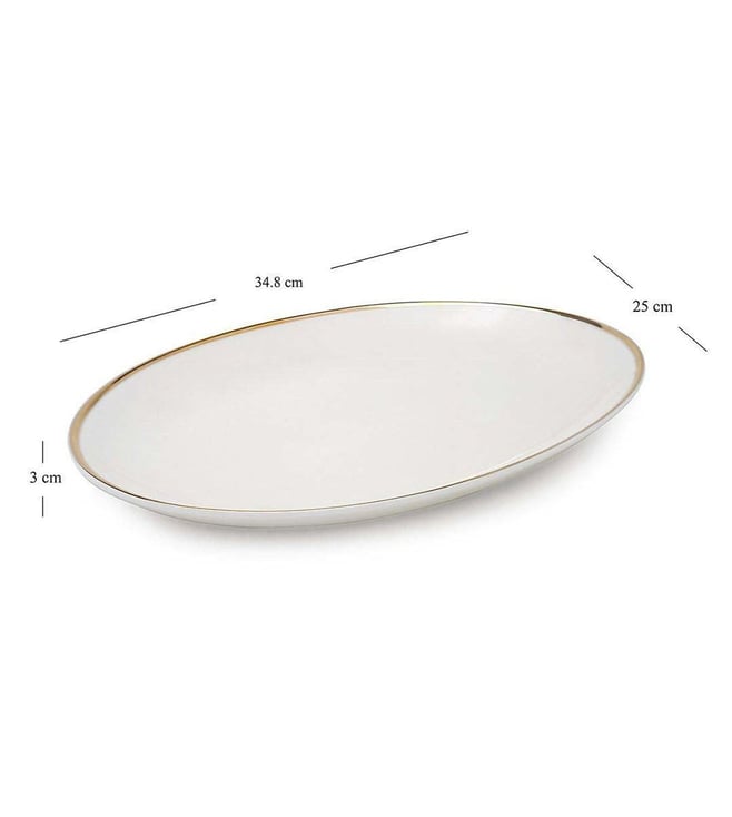 Pure Home and Living White Ceramic Gold Rim Rice Platter