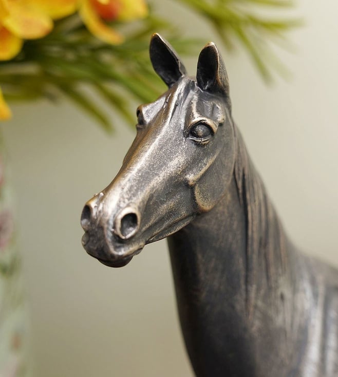 Add a touch of class and elegance to your space with this set of 1 standing horse figurine from Pure Home and Living. Crafted in polyresin, it is durable, light and easy to style, be it in a bedroom, office or living area. It is an ideal gift for a housewarming occasion or you can get it to renovate your home decor.