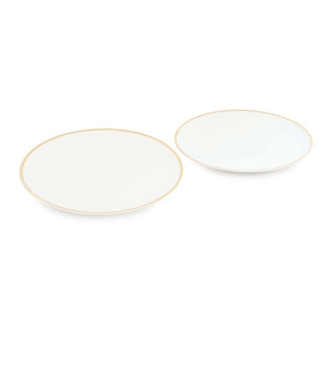 Pure Home and Living White Porcelain Dessert Plates With Gold Line - Set of 2