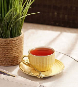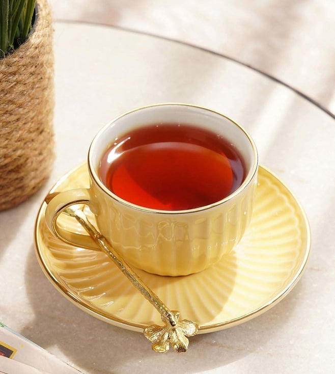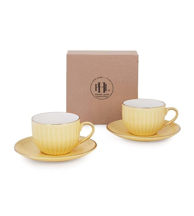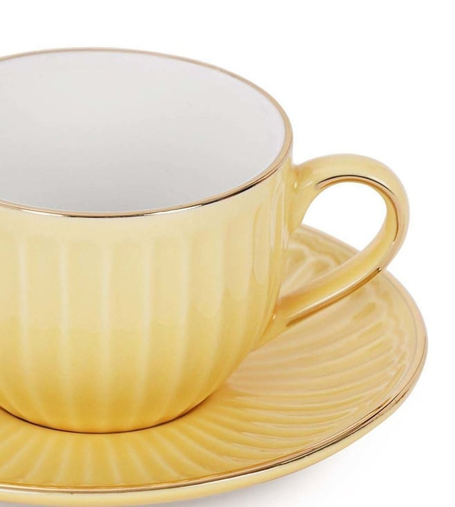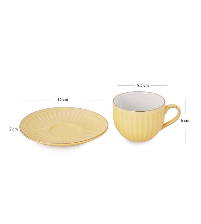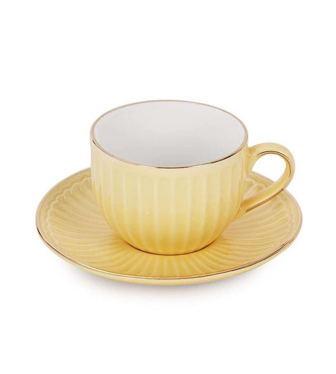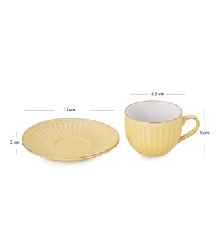 Pure Home and Living Yellow Ceramic Ribbed Cup And Saucer Set