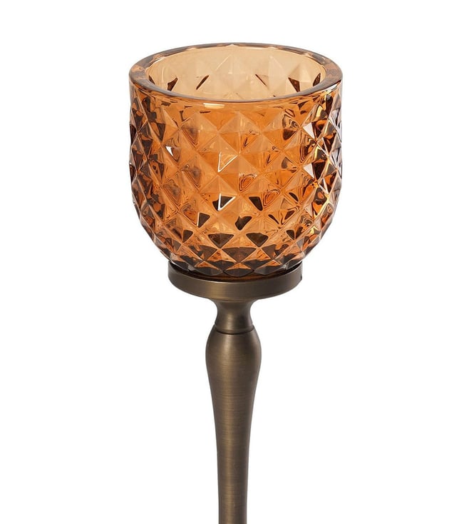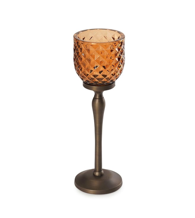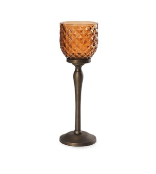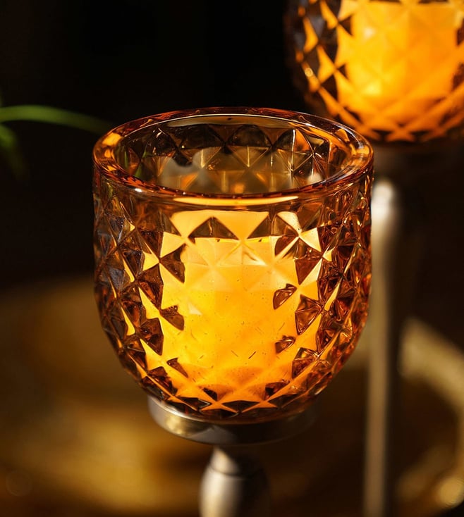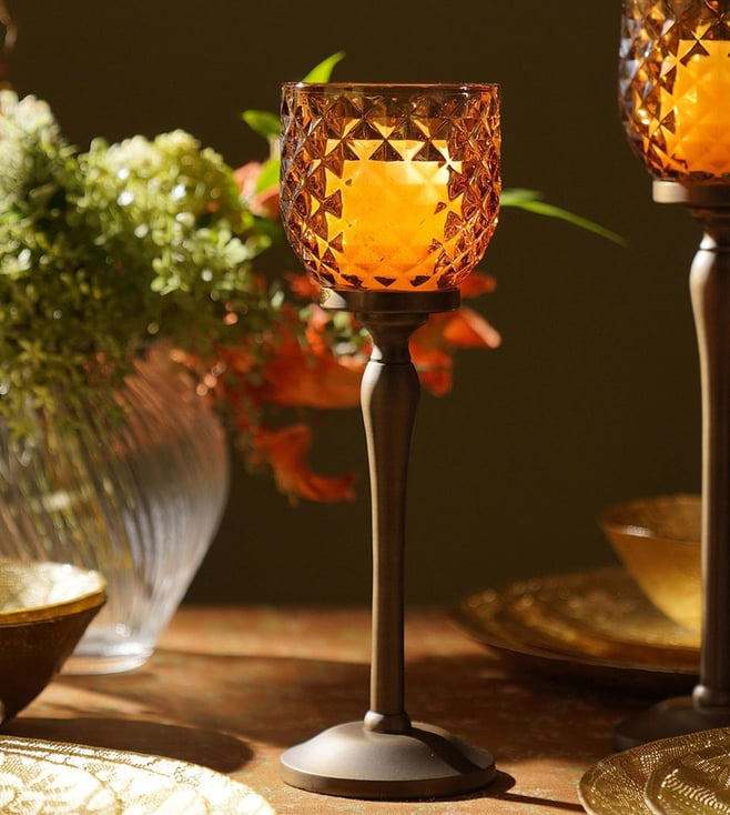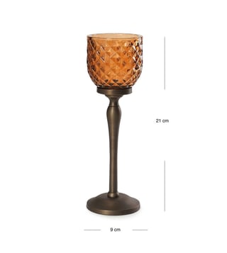 Illuminate your space with Pure Home and Living's yellow glass hurricanes. Their vibrant hue adds a cheerful touch, perfect for any decor style. Disclaimer: All other items in the image are only for display purposes and will not be a part of the delivery content. Product colour may slightly vary due to photographic lighting sources. Country of Origin - India.