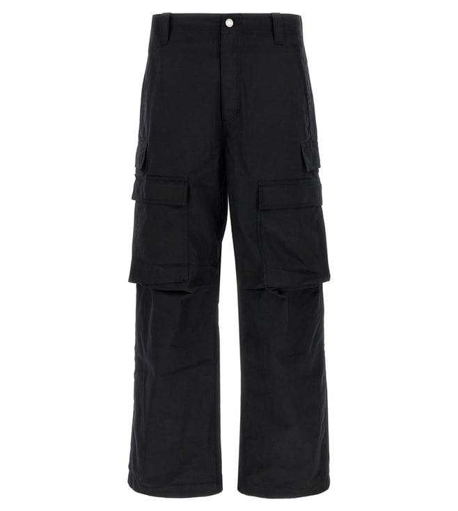 Black Woven Relaxed Fit Cargo Pants