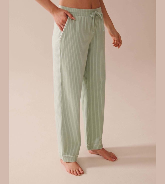 Brown Piping Detail Pyjama Striped Relaxed Fit Shirt