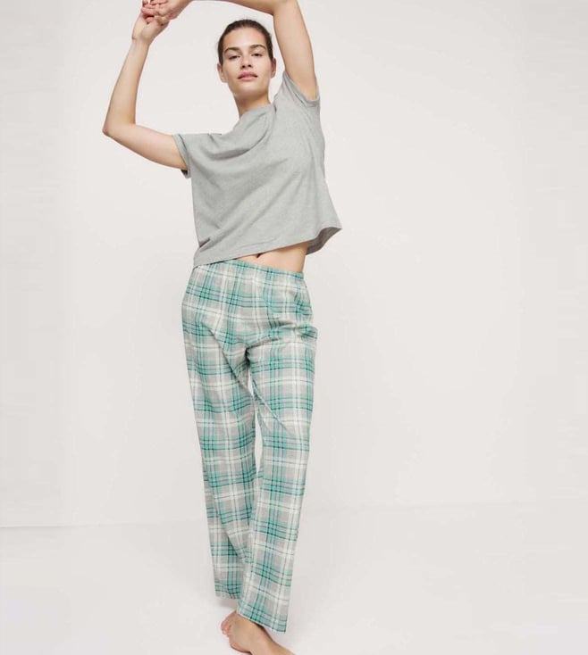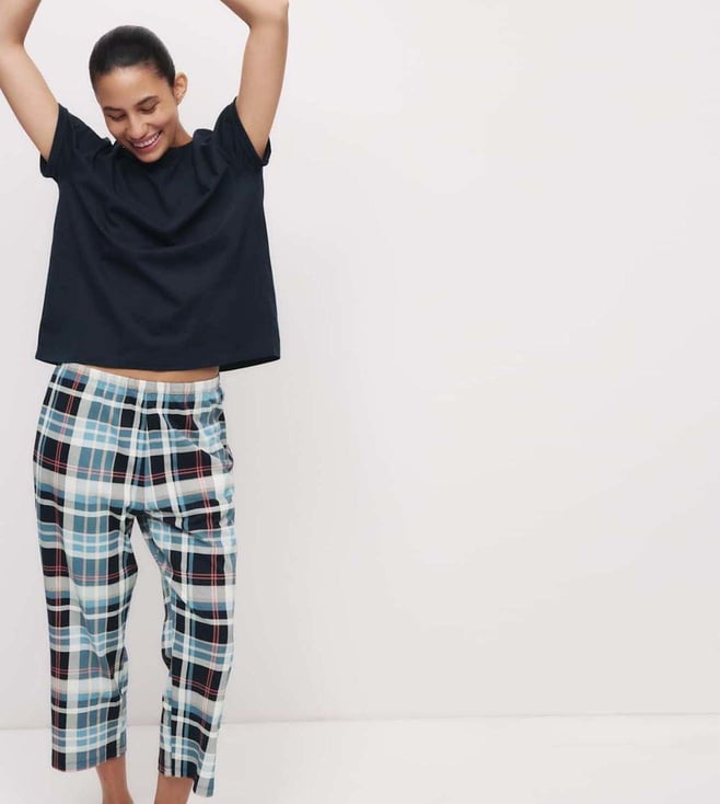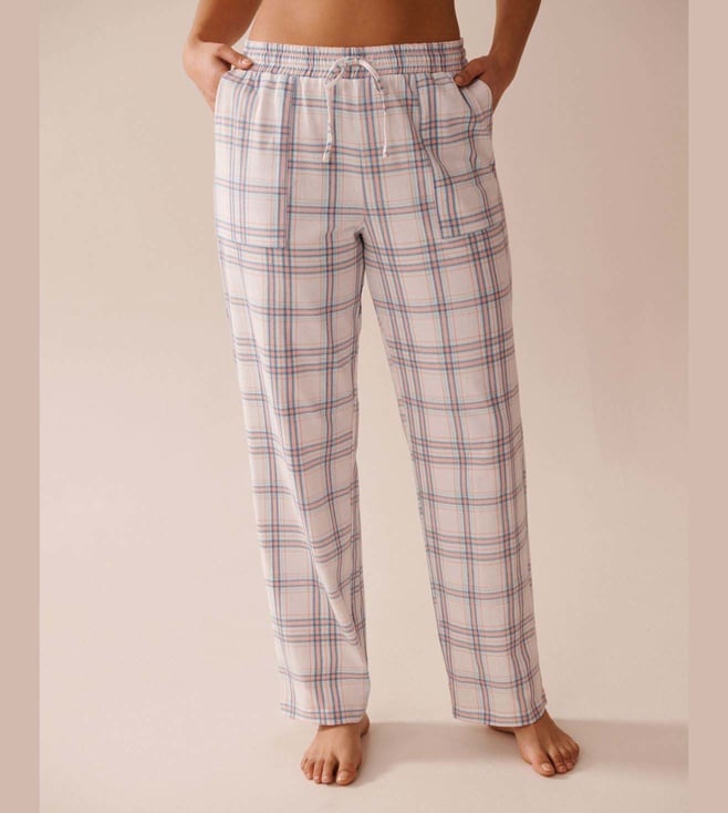 White Cotton Regular Fit Checks Pyjamas