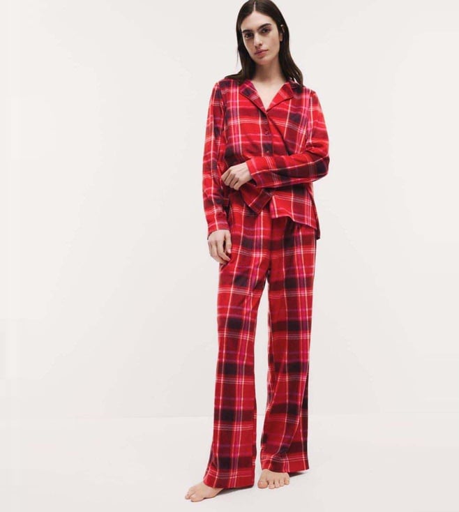 Red Fleece Printed Revere Pyjama Set