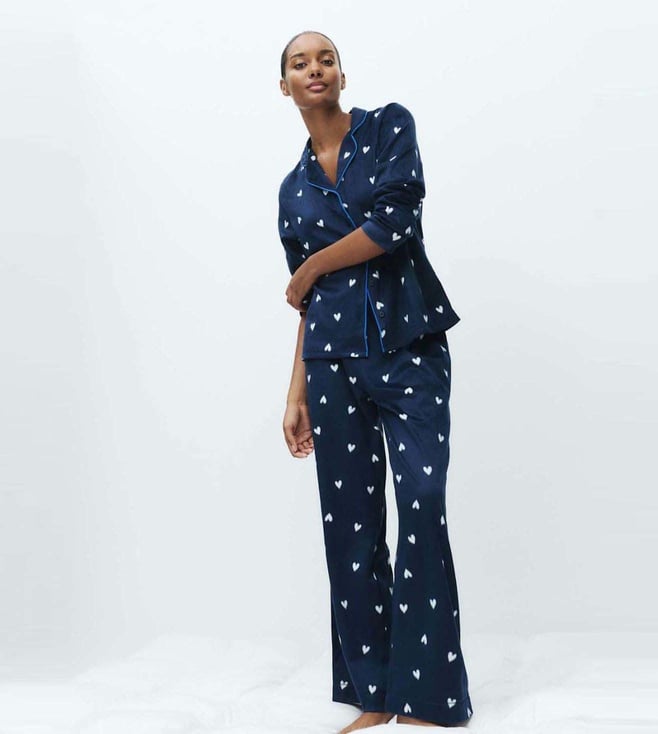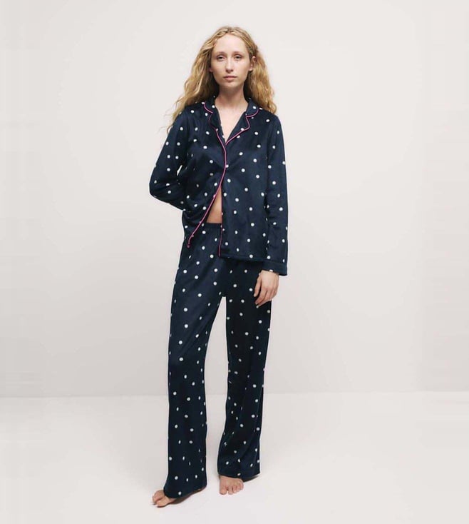 Navy Pure Cotton Printed Pyjama Set