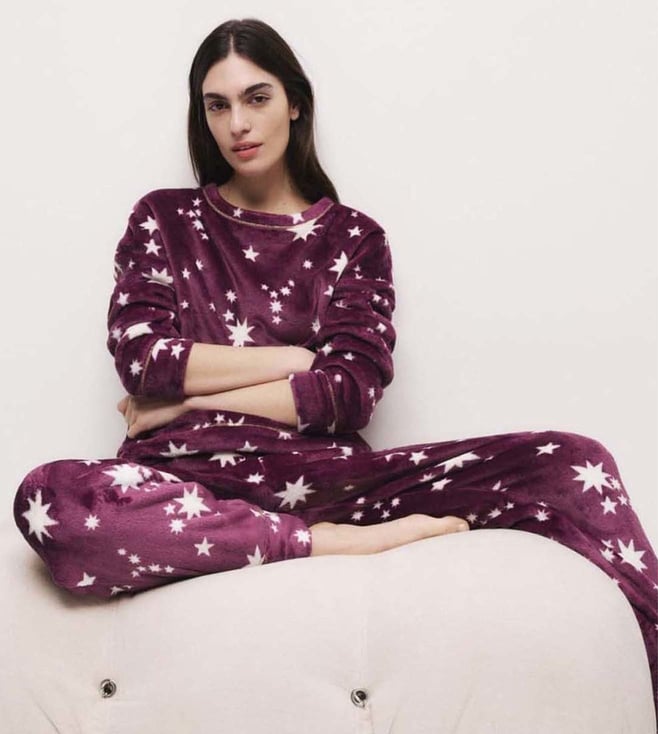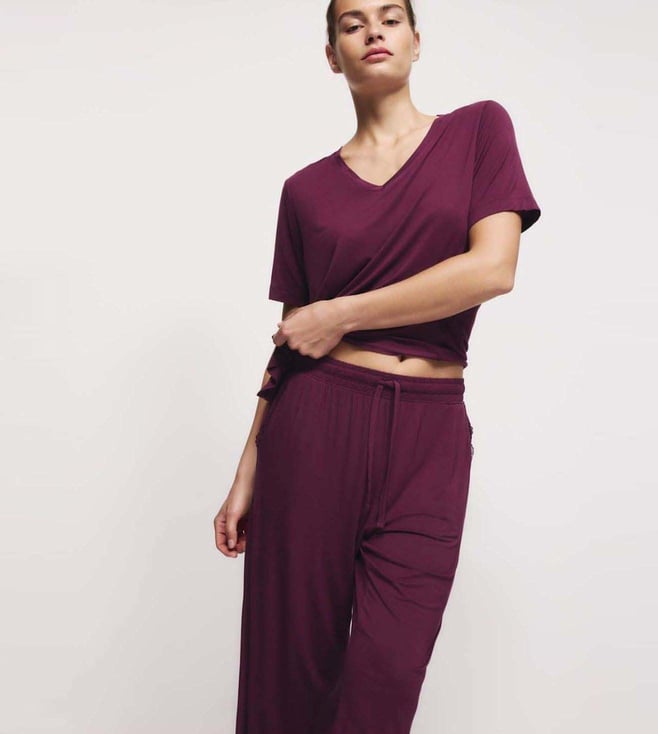 Dark Magenta Viscose Lace Pyjama Set
