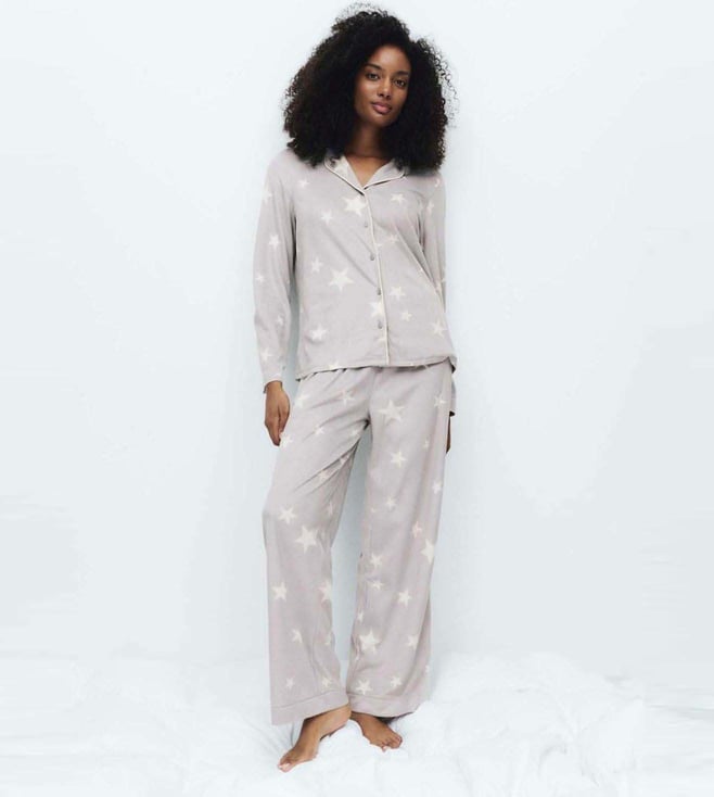 Grey Cotton Rich Printed Pyjama Set