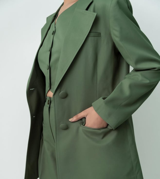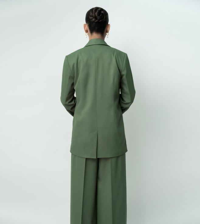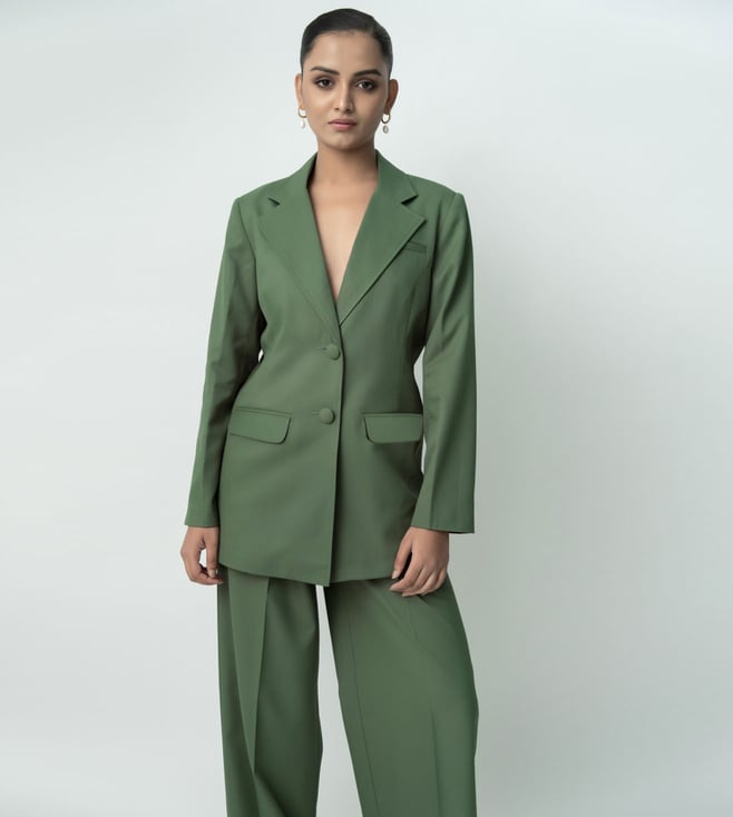 With a comfort-driven design, this Energia suit has a fierce look for all 12 months of the year. The loose-fit blazer features two fabric buttons at the front with flap pockets, a welt pocket on the inside and a mock pocket on the chest. The wide-leg trousers feature cut-outs at the waist and inverted box pleats at the front. It has front welt pockets and patch pockets at the back. It has been made using 85 percent polyester, 13 percent viscose and 2 percent lycra. Disclaimer: Product colour may slightly vary due to photographic lighting sources. Country Of Origin - India.