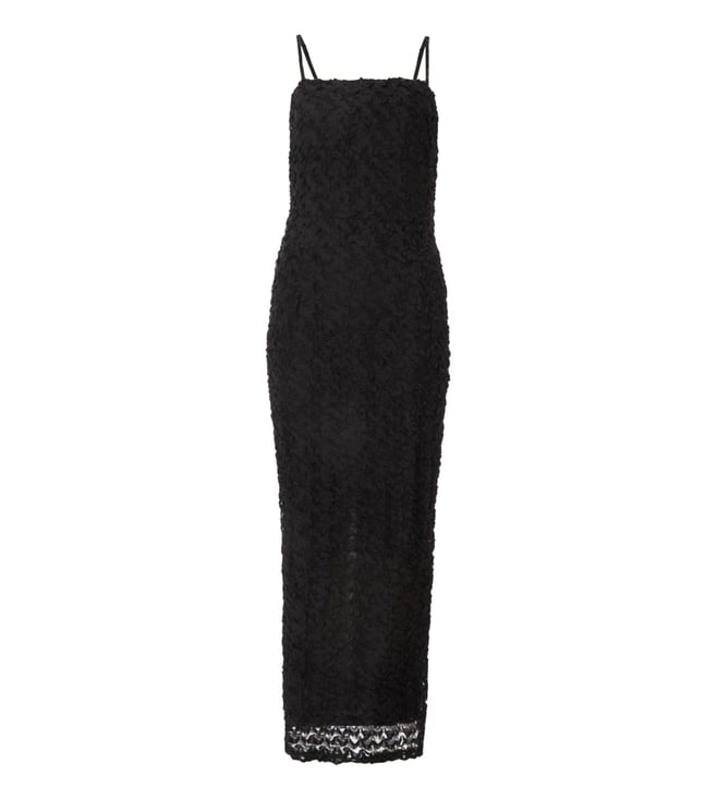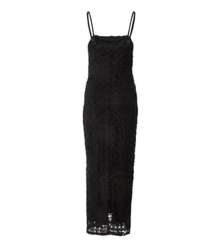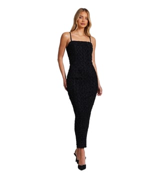 Give your wardrobe a fashionable spin with this black regular fit sleeveless dress from Quiz. Tailored to sartorial perfection from premium quality fabric, it assures a soft and soothing touch against the skin. The square neck magnifies its overall appeal. The self pattern renders it fashionable.