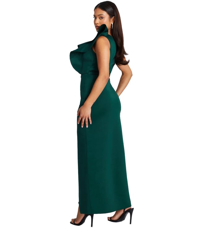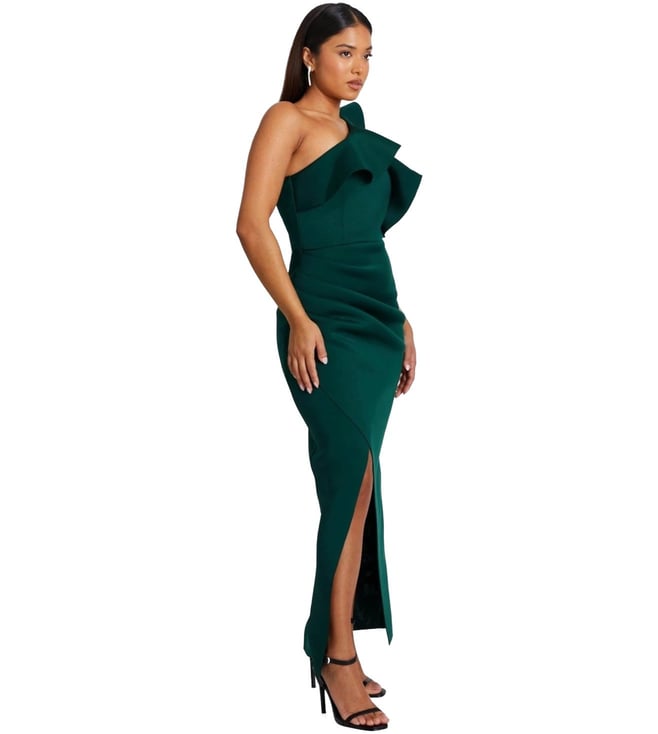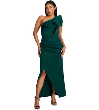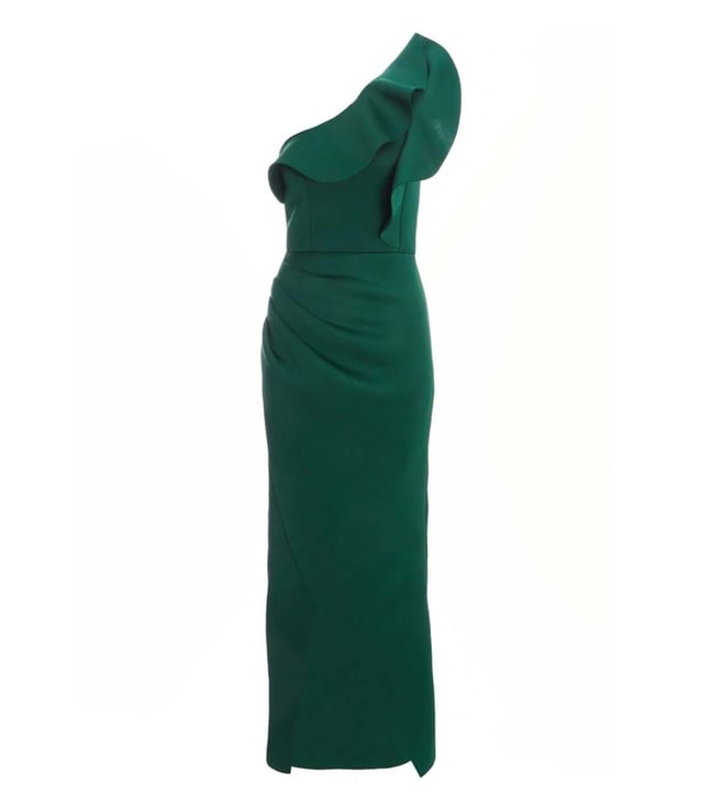 Sensationalize your wardrobe with this green one-shoulder sleeveless dress from Quiz. Tailored to sartorial perfection from premium quality fabric, it assures a soft and soothing touch against the skin.
