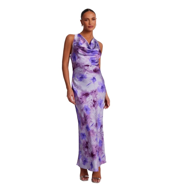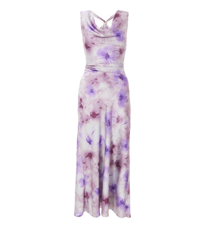 Rekindle your style quotient by wearing this lavender regular fit sleeveless dress from Quiz. Tailored to sartorial perfection from premium quality fabric, it assures a soft and soothing touch against the skin. The cowl neck adds to its appeal.
