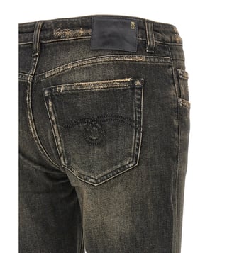 Elevate your wardrobe with the R13 Black Straight Fit Jeans. Designed with boy straight stretch cotton denim jeans with used-effect details, zip and button closure, five pockets, leather logo tag. true to size fit, these trousers combine comfort and sophistication for everyday wear. Products purchased from Darveys are supported exclusively by the warranty/exchange policies of Darveys and its partner boutiques. Brand owners and their channel partners are not responsible for exchange/warranty services for items purchased through Darveys.