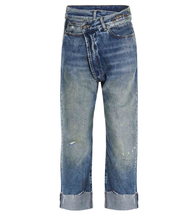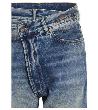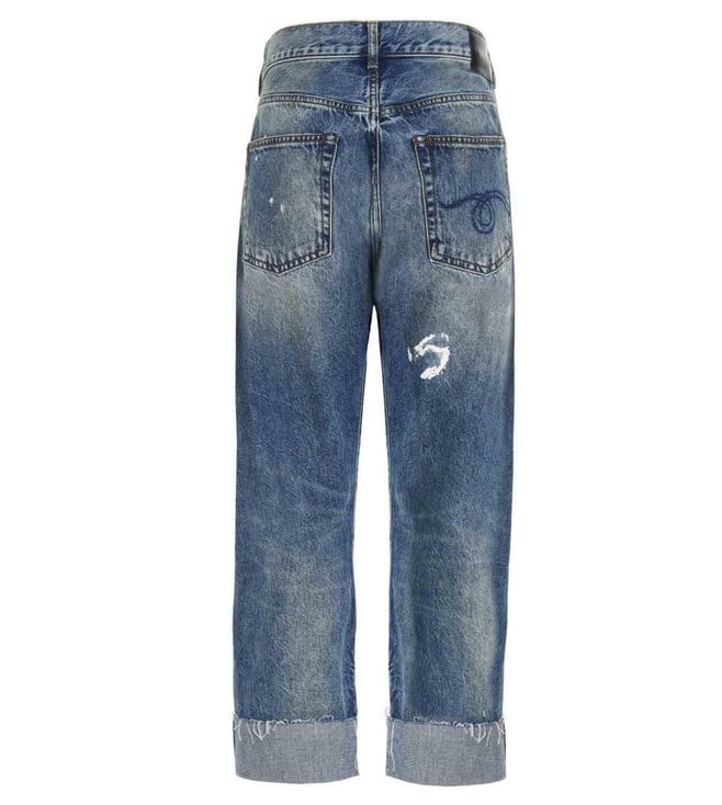 Elevate your wardrobe with the R13 Blue Straight Fit Jeans. Designed with cross over five-pocket denim jeans with side closure, cut-out detail under the fly and destroyed details at the hem. true to size fit, these trousers combine comfort and sophistication for everyday wear. Products purchased from Darveys are supported exclusively by the warranty/exchange policies of Darveys and its partner boutiques. Brand owners and their channel partners are not responsible for exchange/warranty services for items purchased through Darveys.