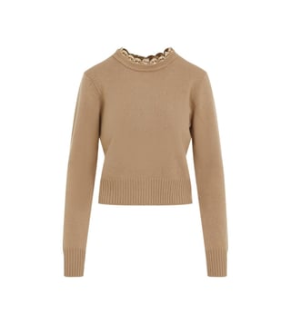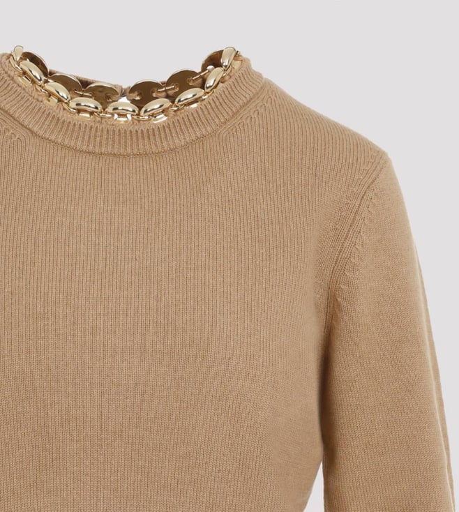 Wrap yourself in the luxurious embrace of the Rabanne Brown Wool Pullover, a masterpiece of elegance and warmth. This exquisite piece, crafted from the finest wool, showcases a rich brown hue that exudes sophistication. The intricate pattern weaves a tale of timeless style, while the seamless closure ensures a perfect fit. Designed exclusively for women, this pullover is a testament to Rabanne's commitment to quality and fashion-forward design, making it an essential addition to any wardrobe.