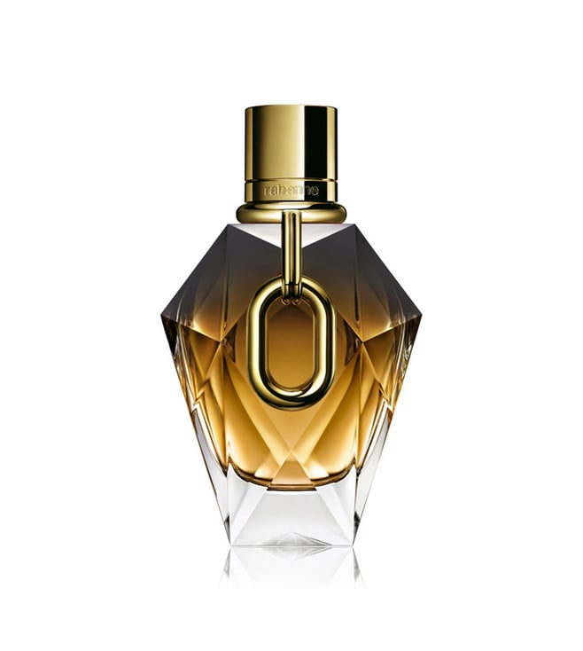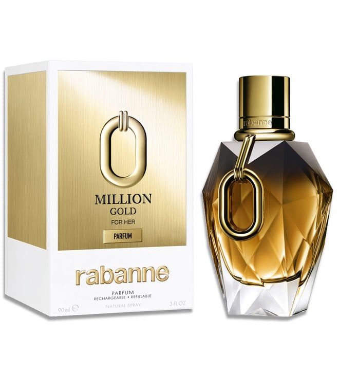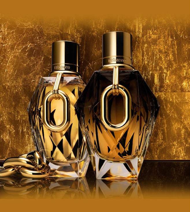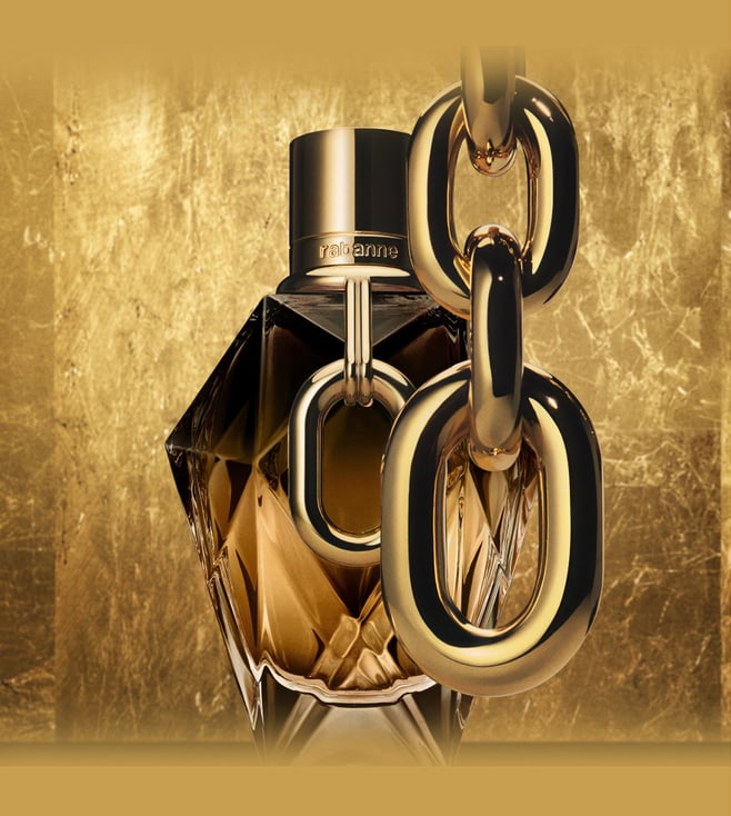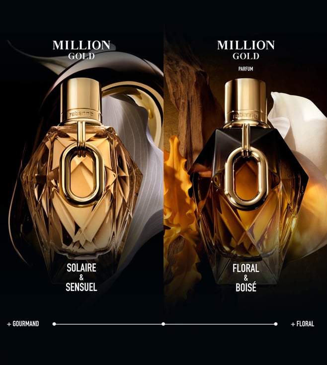 In a snap, strike a pose and live the golden fantasy, be the queen of the night with this perfume. The blazing, glittering heart of the party, slaying the golden dance floor. Million gold for her parfum unleashes a new fiery intensity. A rich and warm sandalwood addiction flashes the golden fantasy on an ultra-feminine floral accord of luminous jasmine absolute and solar ylang ylang. More sensual than ever, million gold for her parfum is the new woody incarnation of rabanne's grand floral.
