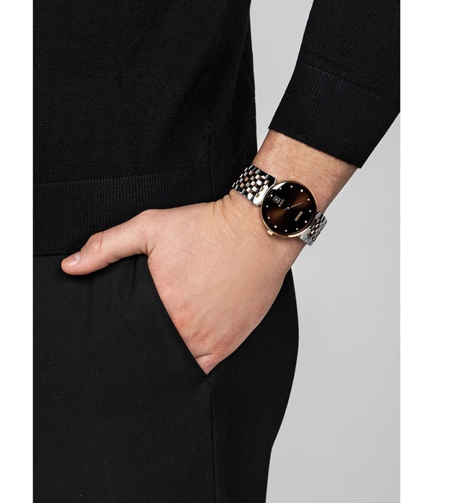 The harmonious design of the Rado Florence Classic watch is inspired by the elegant domes and towers of the city from which the collection takes its name. The 38 mm watch has an edge-to-edge-beveled, curved sapphire crystal. The stylish bracelet is made of polished stainless steel, completing the overall appearance of this iconic timepiece. The sunray dial with twelve diamonds is emphasized with the printed jubile logo, which matches perfectly with the rhodium-colored hands. Powered by three-hand caliber quartz movement, the watch has 50 m water resistance and resistance to shocks.
